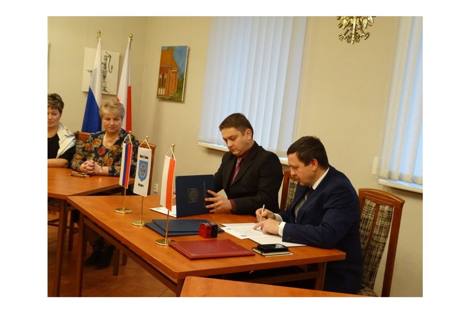 W trakcie spotkania odbyło się uroczyste podpisanie listu intencyjnego, w którym strony zadeklarowały chęć zawarcia porozumienia w celu umocnienia więzi i współpracy pomiędzy Miastem Ladushkin a Miastem i Gminą Młynary.