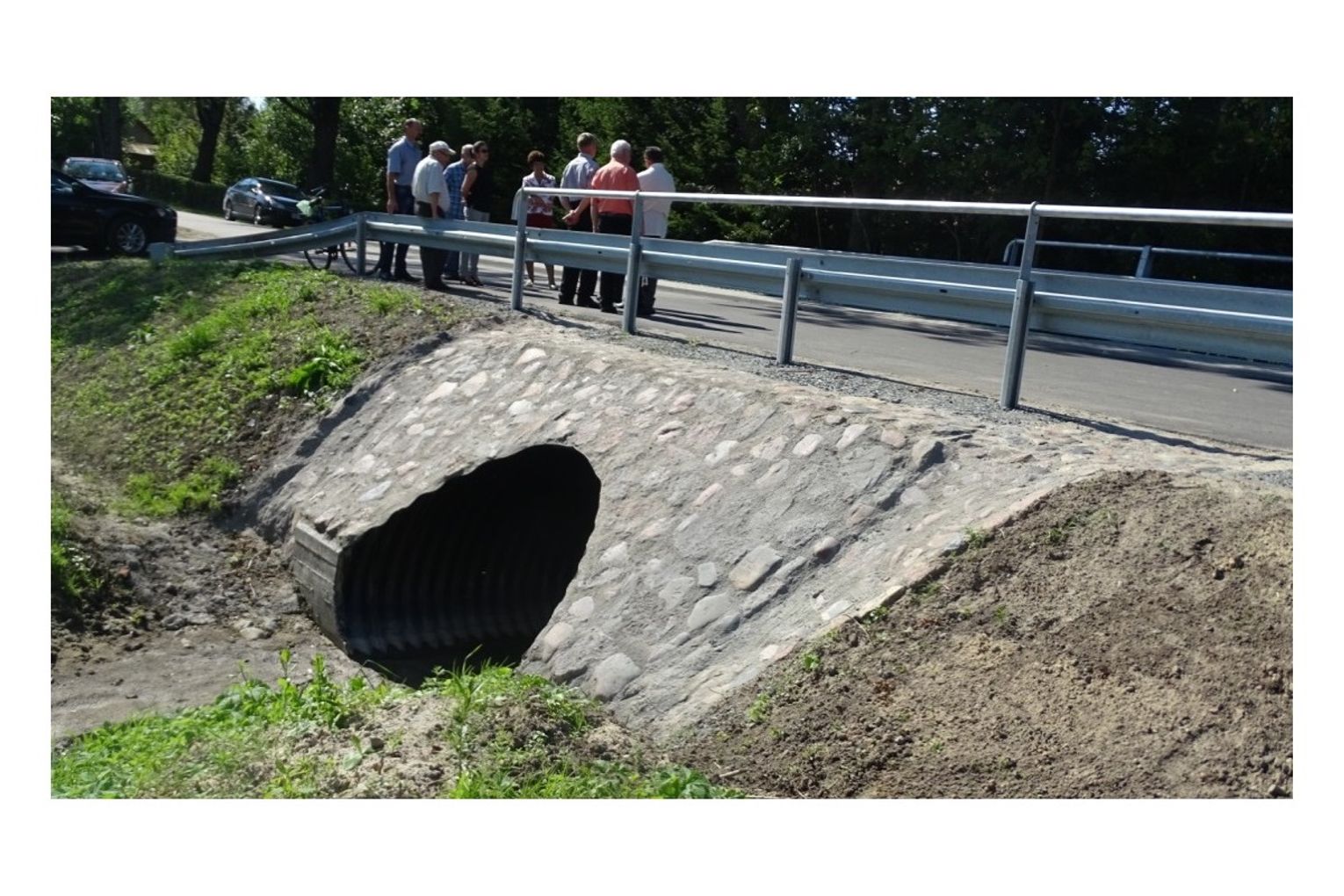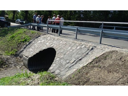 W dniu 01 września 2016r. odbyło się oficjalne oddanie do użytku przepustu ceglanego w ciągu drogi gminnej nr 107021N w m. Młynarska Wola. Uroczystego przecięcia wstęgi dokonał Pan Marek Misztal Burmistrz Miasta i Gminy Młynary, radny Pan Jerzy Łesyk, sołtys Pan Henryk Hasiura oraz wykonawca inwestycji Pan Józef Przyborowski Przedsiębiorstwo Usług Drogowo-Mostowych z Rogit. Inwestycja polegała na budowie w miejscu istniejącego przepustu ceglanego, przepustu stalowego z rur spiralnie karbowanych z rozbiórką przęsła starego przepustu. Dla zabezpieczenia ruchu, na krawędziach przepustu ustawiono stalowe balustrady oraz wykonano chodnik o łącznej powierzchni 65 m2. W ramach inwestycji wykonano także nową nawierzchnię asfaltową na odcinku drogi o długości 187 mb.