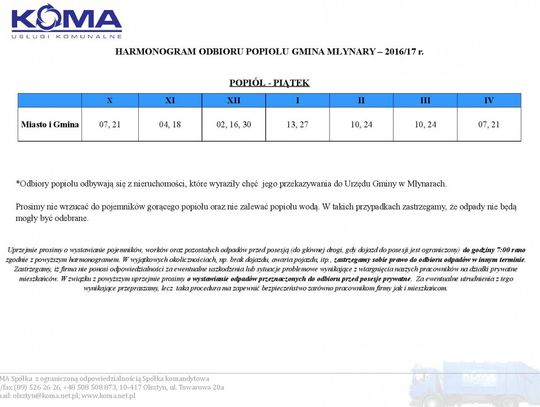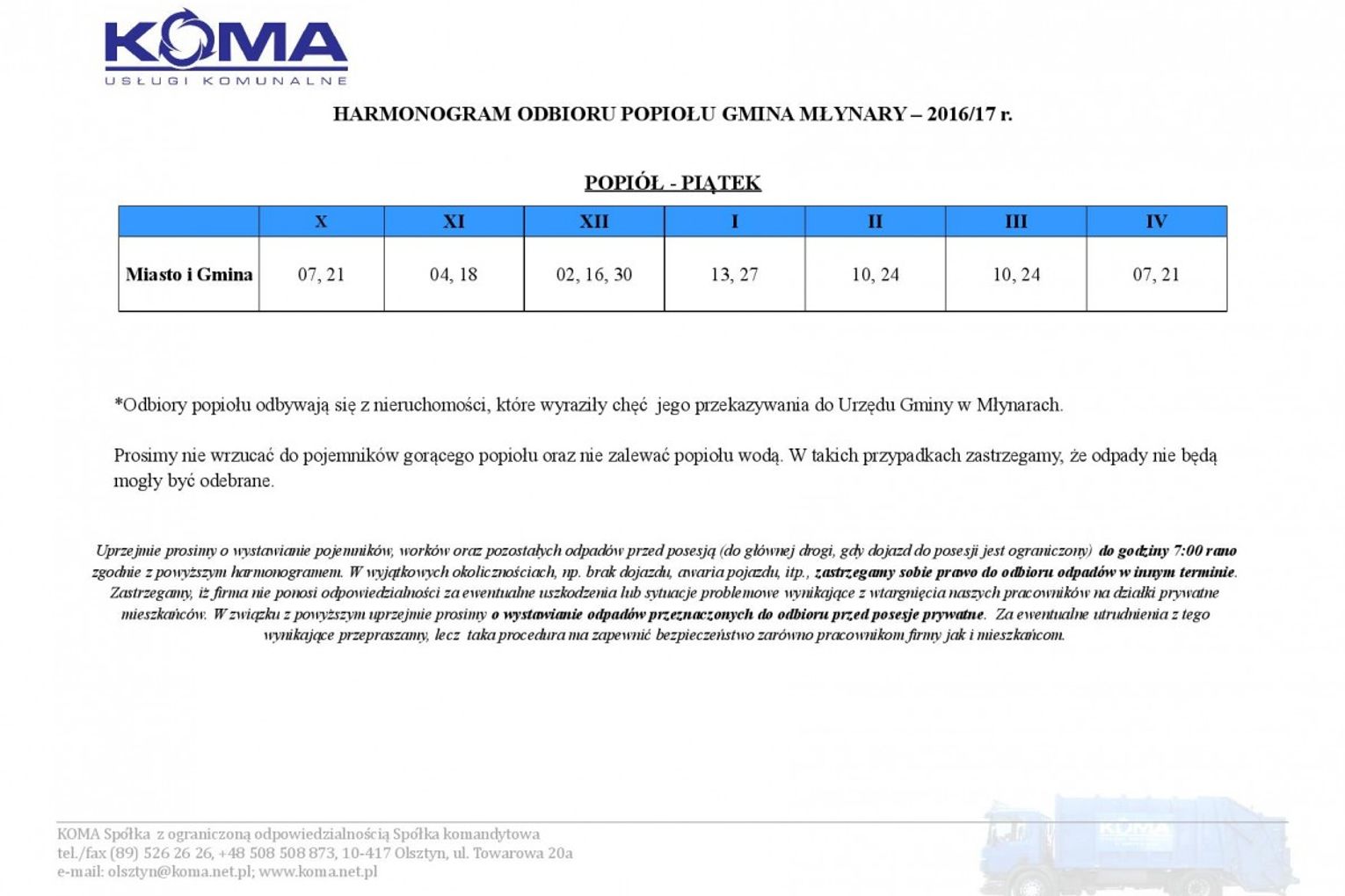 Na terenie Gminy Młynary będzie prowadzona zbiórka popiołu, od właścicieli nieruchomości, którzy zgłoszą zamiar jego selektywnej zbiórki w siedzibie Urzędu Miasta i Gminy w Młynarach (piętro II, pokój nr 13).