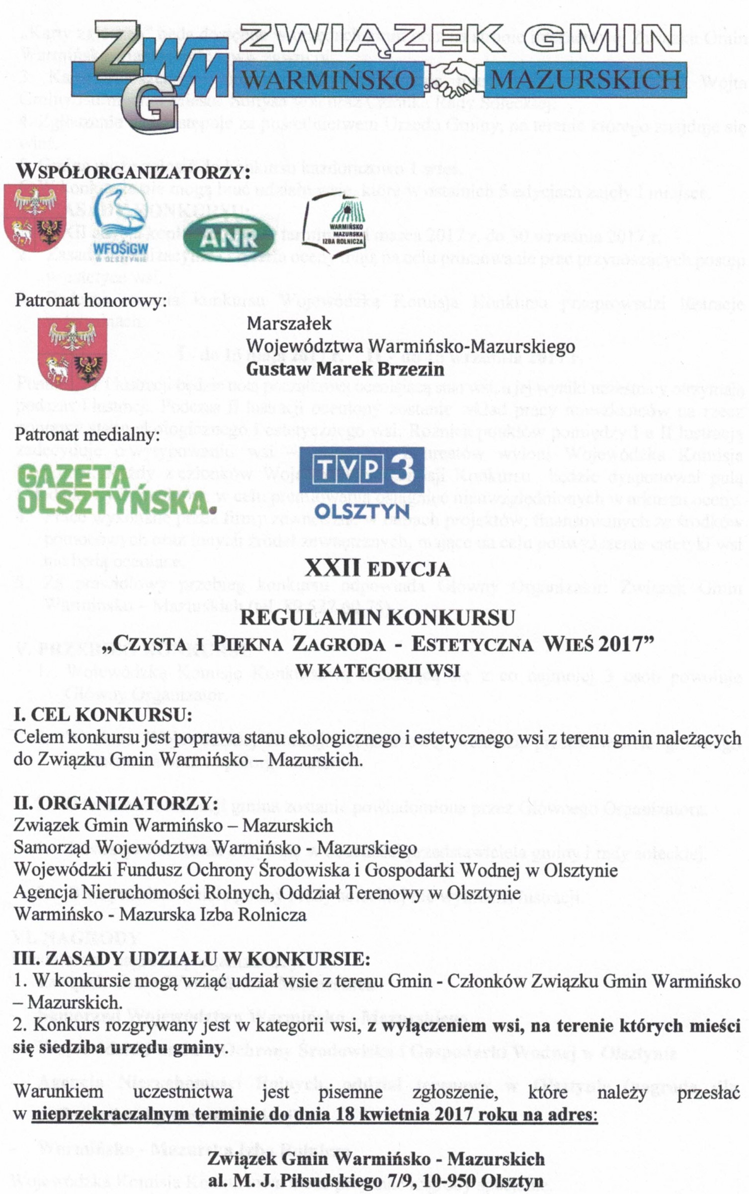 XXII Edycja konkursu „Czysta i Piękna Zagroda - Estetyczna Wieś 2017”