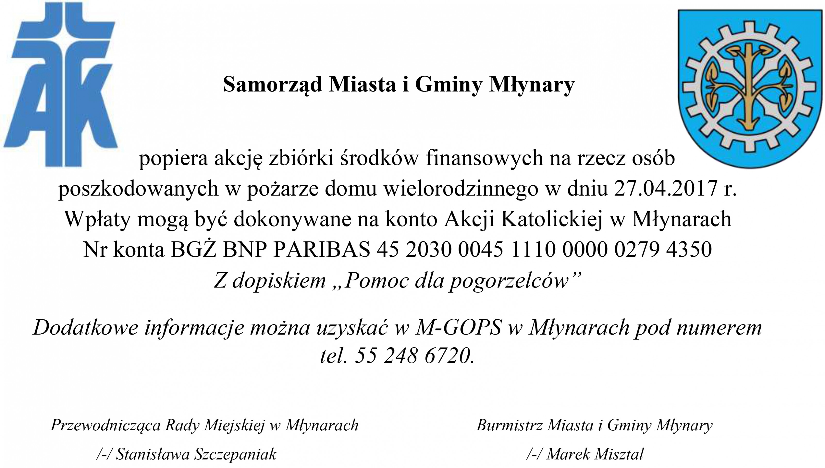 Akcja zbiórki środków finansowych na rzecz osób poszkodowanych w pożarze domu