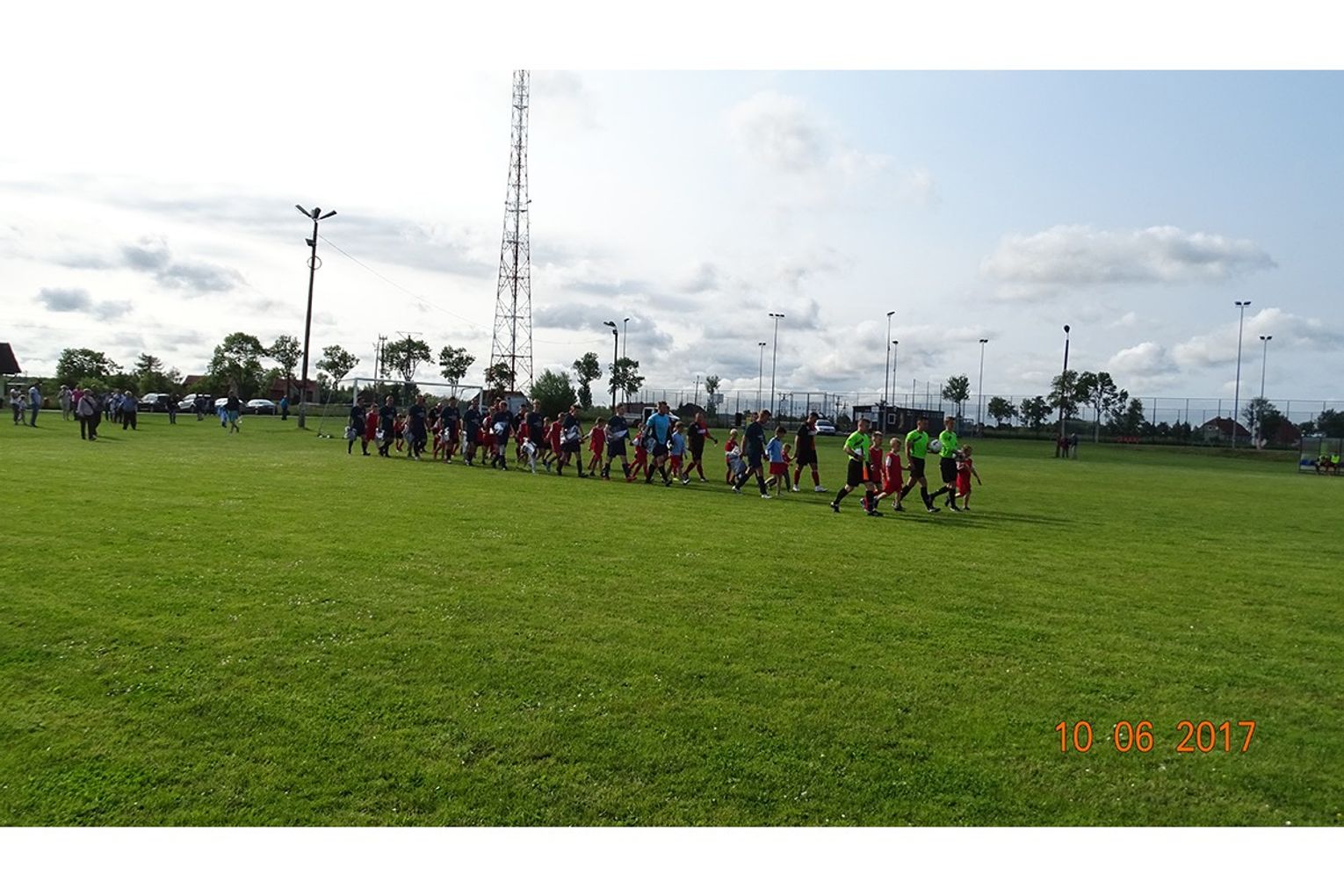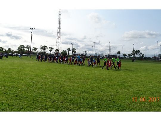 Uroczystego otwarcia dokonał Pan Burmistrz witając wszystkich kibiców, zawodników, sędziów oraz przybyłych gości. Gracze z obu drużyn zostali wprowadzeni na murawę w towarzystwie młodych adeptów piłki nożnej. Przed meczem rozbrzmiały hymny narodowe obu drużyn.