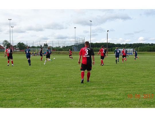 Od pierwszych minut gospodarze przeważali na boisku, czego skutkiem były dwie bramki strzelone przez Michała Matulewicza. W dalszej części meczu, po niefortunnym błędzie jednego ze środkowych pomocników drużyny z Młynar, Brokdorf wykorzystał szansę i doprowadził do wyniku 2:1. W drugiej połowie walka była zacięta, lecz wynik nie uległ zmianie. Spotkanie zakończyło się zwycięstwem Gminy Młynary wynikiem 2:1.