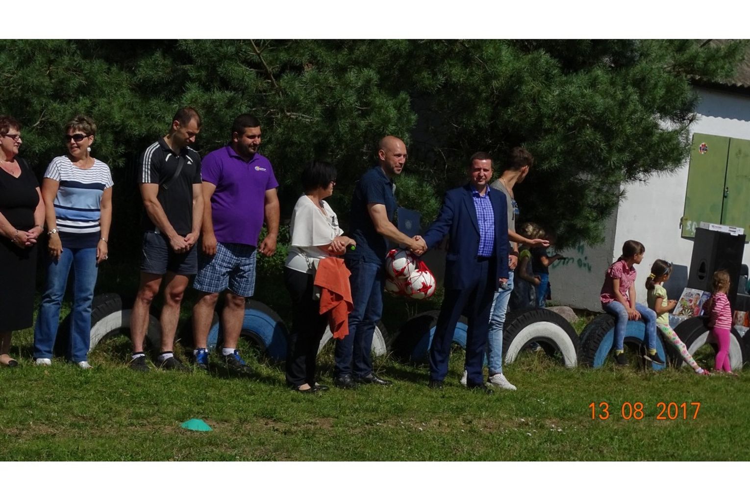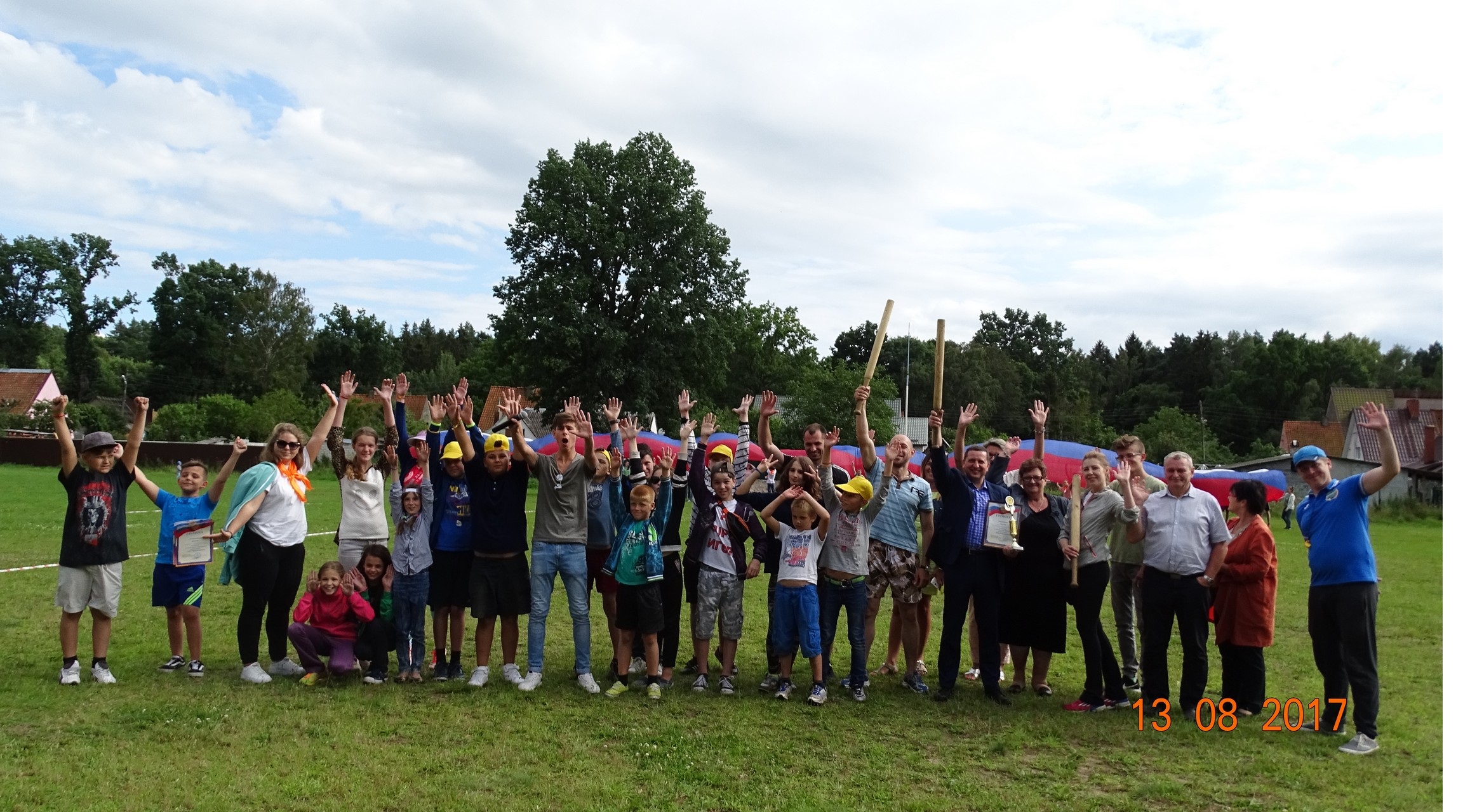 W dniu 13 sierpnia 2017 r. delegacja z Miasta i Gminy Młynary na czele z Panem Markiem Misztalem Burmistrzem uczestniczyła w obchodach ,,Dnia Sportu” w mieście partnerskim Ladushkin. Wszyscy tego dnia spotkali się na boisku sportowym. Uroczystego otwarcia dokonał Pan Alexey Rodin Mer Miasta Ladushkin, który powitał zaproszonych gości oraz delegację z Gminy Młynary. Pan Burmistrz podczas przemówienia podziękował za zaproszenie i przekazał na ręce Pana Alexeya Rodin prezent w postaci piłek sportowych do gry w piłkę nożną. Na początek imprezy przewidziano wspólny trening fitness, który miał posłużyć jako rozgrzewka przed wysiłkiem sportowym. Dyscypliną królującą w tym dniu okazała się narodowa rosyjska gra zespołowa z piłką i bitem zwana ,,LAPTĄ”. Zasadami podobna do Amerykańskiego ,,BASEBALL”. Celem gry jest – za pomocą bita wysłać piłkę tak daleko, jak to możliwe i na przemian z powrotem na przeciwną stronę, nie pozwalając na złapanie piłki drugiej drużyny. Tego dnia dopisywały dobre humory i pogoda. Emocje sportowe udzieliły się również włodarzom obu miast. W konkurencji pompek okazał się znacznie lepszy Burmistrz Miasta i Gminy Młynary. Uwieńczeniem ,,Dnia Sportu w Mieście Ladushkin” było wręczenie dyplomów i pucharów najlepszym zawodnikom. Delegacja z Miasta i Gminy Młynary powróciła z pamiątkowym dyplomem oraz pucharem.