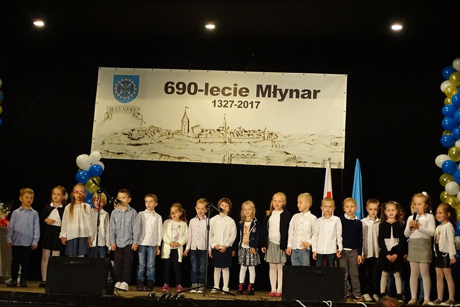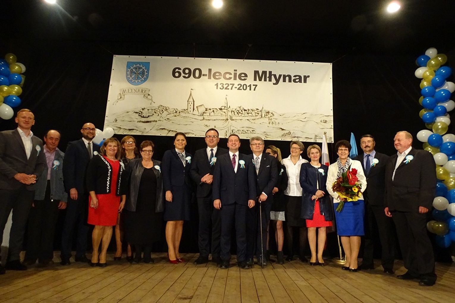 W Gminie Młynary rok 2017 został ustanowiony Rokiem Jubileuszu 690-lecia nadania praw miejskich miastu. Jubileusz stał się okazją do zorganizowania wydarzeń kulturalnych, sportowych i rozrywkowych. Punktem kulminacyjnym była jubileuszowa akademia, która odbyła się 22 września 2017 r. w kinie Zenit w Młynarach. Uroczystości rozpoczęły się występem solistki zespołu INTEGRATON – Ady Lisowskiej. Następnie Burmistrz Miasta i Gminy Młynary Pan Marek Misztal powitał zaproszonych gości oraz przybyłych na tę uroczystość radnych, sołtysów, kierowników jednostek organizacyjnych gminy, przedstawicieli Ochotniczych Straży Pożarnych oraz mieszkańców gminy Młynary. W wystąpieniu swoim zaznaczył, że miastu Młynary prawa miejskie nadano dwukrotnie. Pierwszy raz w 1327 roku, a drugi raz w roku 1984. W swej historii Młynary przeżywały okresy trudne: wojny i choroby, zniszczenia wojenne, ale również okresy szybkiego rozwoju przypadające na lata 50. XIX wieku: budowa kolei, rozwój przemysłu piwowarskiego, drzewnego, zbożowego. Ostatnie lata to okres wielu znaczących dla miasta i gminy inwestycji poprawiających warunki życia mieszkańców. Nadal budowane są drogi np. w Zastawnie, Nowym Monasterzysku a niebawem we Włóczyskach. Czynione są starania związane z wybudowaniem nowego przedszkola, którego lokalizacja przewidziana jest w sąsiedztwie Szkoły Podstawowej w Młynarach. Na zakończenie wystąpienia Burmistrz podziękował wszystkim, którzy przyczynili się do organizacji Jubileuszu 690-lecia Młynar i życzył mieszkańcom wszelkiego dobra, zdrowia i dynamicznego rozwoju miasta. Gratulacje i życzenia złożyli również przybyli goście: burmistrzowie i wójtowie z powiatu elbląskiego i braniewskiego. Podczas akademii, historię miasta zaprezentowali uczniowie Szkoły Podstawowej w Młynarach, zaś fotograficzną wystawę pt. „Młynary dawniej i dziś” przygotował Ośrodek Kultury przy współpracy Urzędu Miasta i Gminy. Nie zabrakło także popisów artystycznych przedszkolaków, uczniów Szkoły Podstawowej w Błudowie i w Młynarach oraz miejscowych zespołów muzycznych Ambrozja i Lawa. Rozstrzygnięte zostały również konkursy: fotograficzny pt. „Młynary- portret miasta” oraz konkurs plastyczny pt. „Walory przyrodnicze miasta Młynary”. Zwycięzcom i wyróżnionym uczestnikom konkursów nagrody i dyplomy wręczył Burmistrz Miasta i Gminy Młynary.