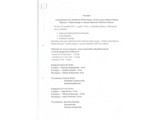 W ramach obchodów jubileuszu 690-lecia miasta Młynary, Burmistrz Miasta i Gminy Młynary Pan Marek Misztal ogłosił konkursy: plastyczny i fotograficzny. Poniżej przedstawiamy protokóły Komisji konkursowej wraz z pracami laureatów...