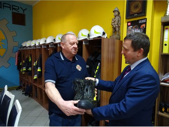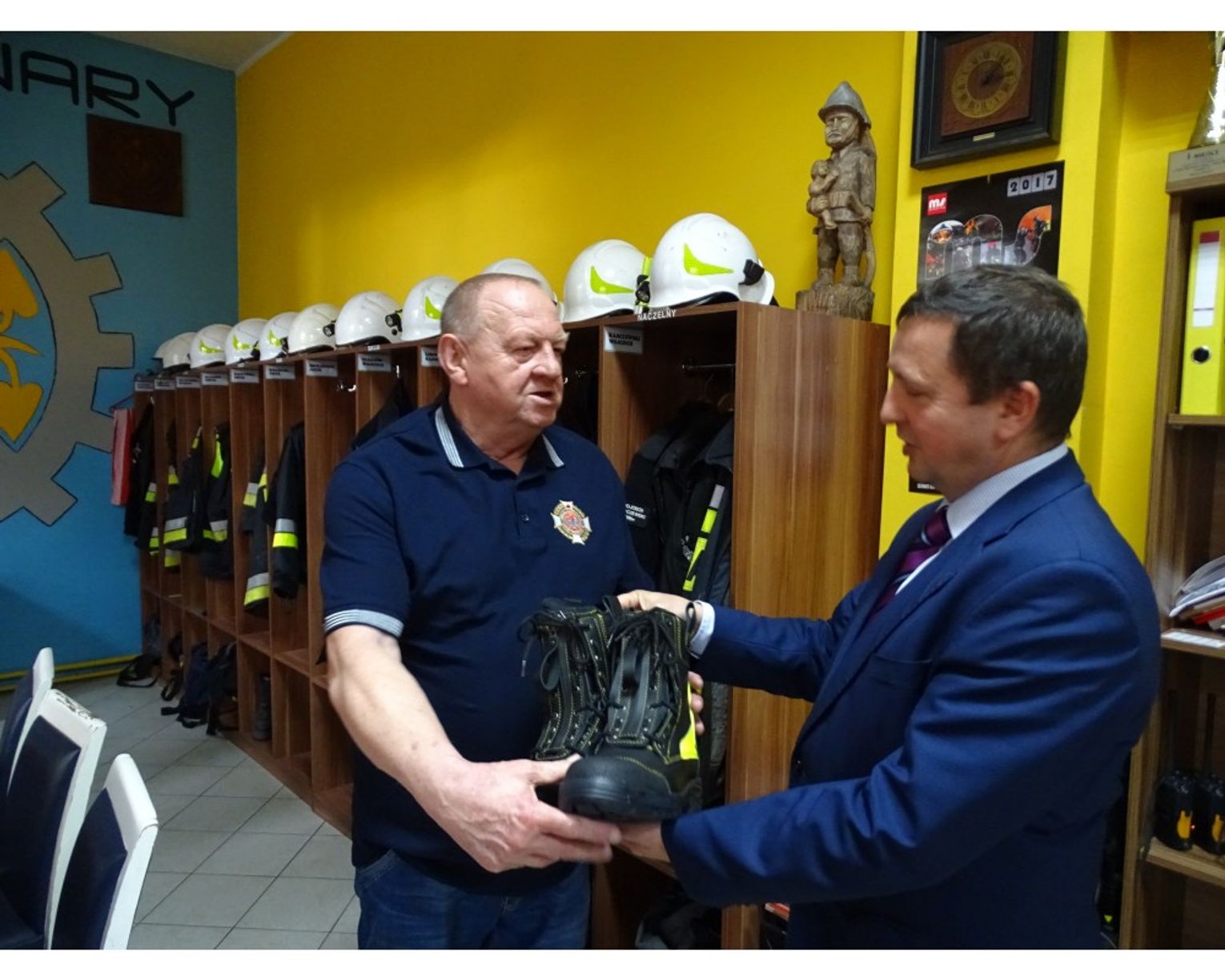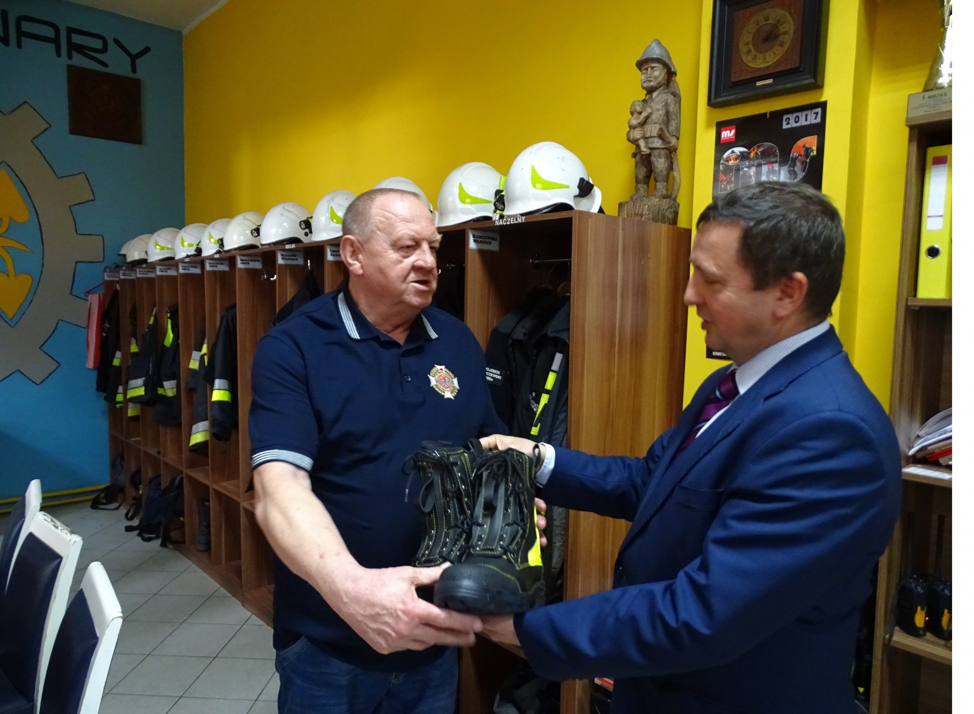 W dniu 13 Października Burmistrz Miasta i Gminy Młynary Pan Marek Misztal wraz ze swoim zastępcą Panią Marią Rogińską przekazali na ręce prezesa OSP Młynary Pana Mieczysława Grynhagla oraz Wiceprezesa/Naczelnika OSP Pana Wojciecha Karczewskiego zakupione obuwie.