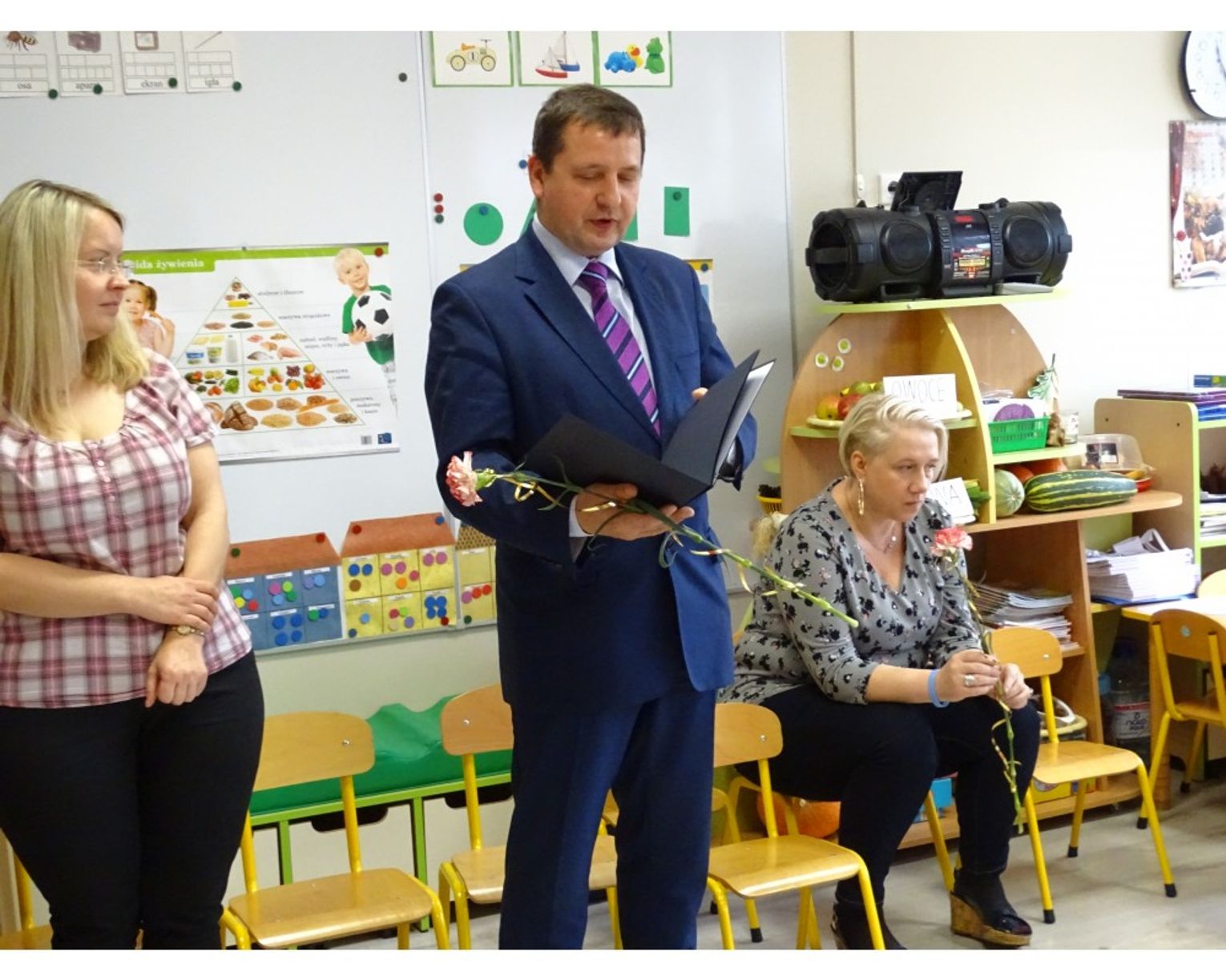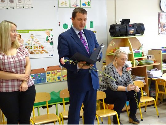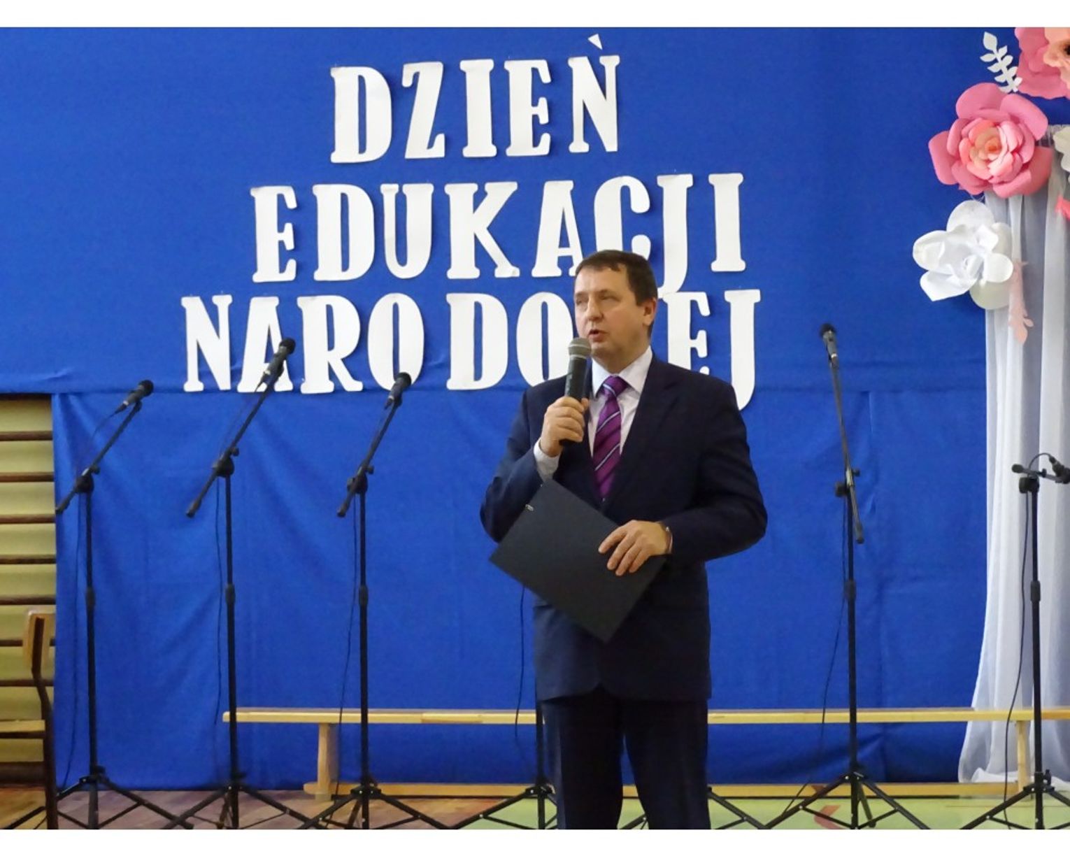 Z tej okazji Pan Marek Misztal Burmistrz Miasta i Gminy Młynary uczestniczył w uroczystych akademiach przygotowanych przez Szkołę Podstawową w Młynarach, Szkołę Podstawową w Błudowie i Przedszkole w Młynarach. Pan Burmistrz złożył życzenia we własnym imieniu oraz Pani Stanisławy Szczepaniak Przewodniczącej Rady Miejskiej i Pani Marii Rogińskiej Zastępcy Burmistrza. Podziękował za poświęcenie, zaangażowanie w pracy z dziećmi i młodzieżą oraz wrażliwość na potrzeby młodych ludzi. Życzył sukcesów zawodowych, satysfakcji z pracy, wytrwałości w pełnieniu swojej misji. By trudowi wkładanemu w edukację i wychowanie zawsze towarzyszyło zaufanie, szacunek uczniów, rodziców i środowiska lokalnego. W tym dniu zostały wręczone nagrody nauczycielom. Pan Burmistrz podarował każdej z odwiedzanych placówek drobne upominkami.