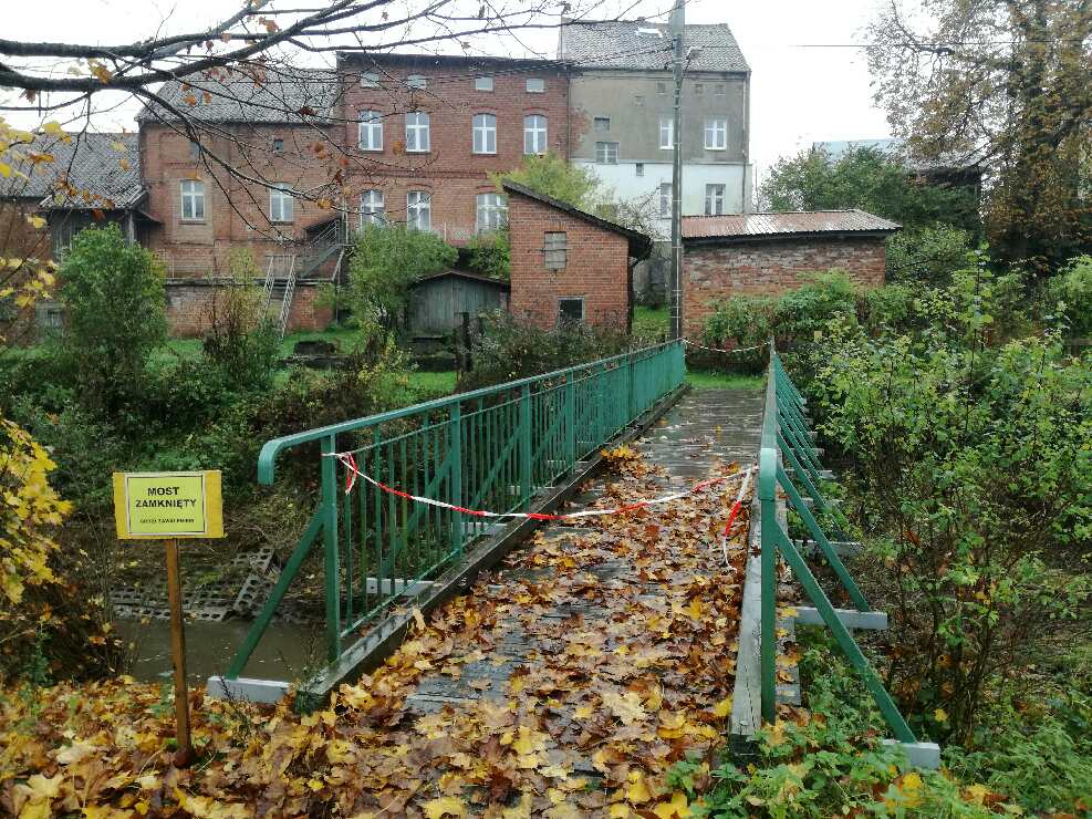 Informuję, że most-kładka na rzece Bauda w Młynarach od dnia 25.10.2017 r. do odwołania zostaje zamknięty. W wyniku licznych odpadów deszczu doszło do osunięcia się skarpy przy rzece a zarazem do uszkodzenia podpór mostu.