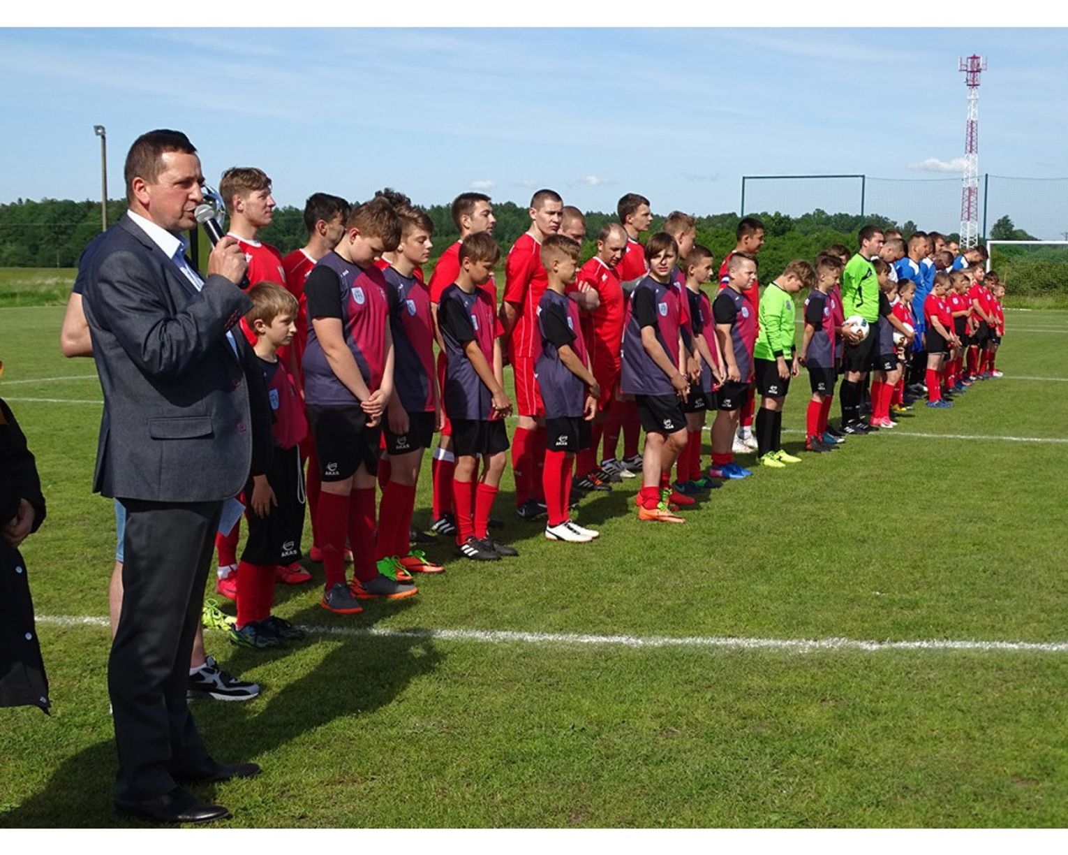 Uroczystego otwarcia meczu dokonał Pan Marek Misztal Burmistrz Miasta i Gminy Młynary. Witając wszystkich kibiców, zawodników oraz gości, zachęcił do aktywnego dopingu obu drużyn. Piłkarze zostali wprowadzeni na murawę w towarzystwie młodych adeptów piłki nożnej. Przed meczem rozbrzmiały hymny narodowe obu drużyn.