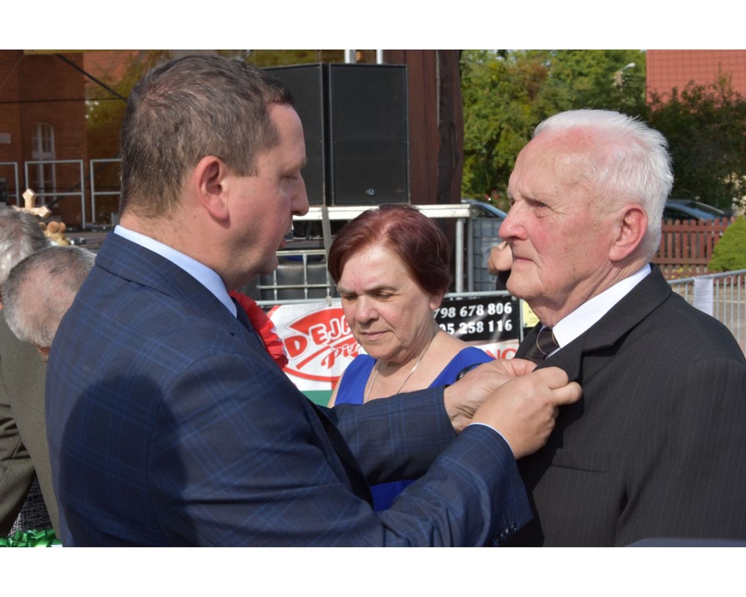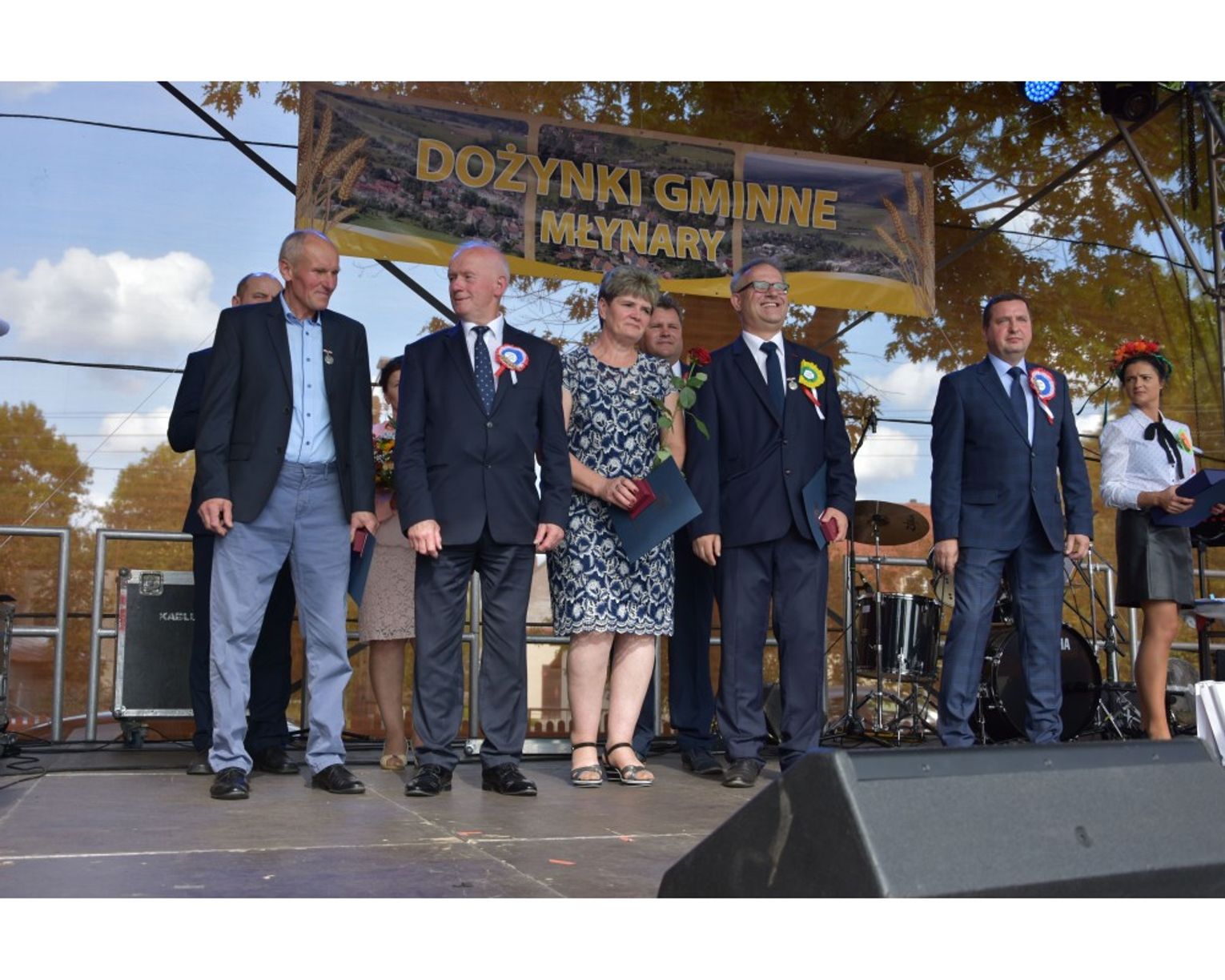 Dożynki to zawsze okazja do nagrodzenia rolników za ich trud włożony w prowadzanie gospodarstwa rolnego, również za całokształt pracy i działalności na rzecz rolnictwa. Medal Odznaki honorowej ,,Zasłużony dla rolnictwa” wręczył wicewojewoda Pan Sławomir Sadowski, a otrzymali go: Pani Bożena Kot, Pan Stanisław Październik oraz Pan Mirosław Sabatowski.