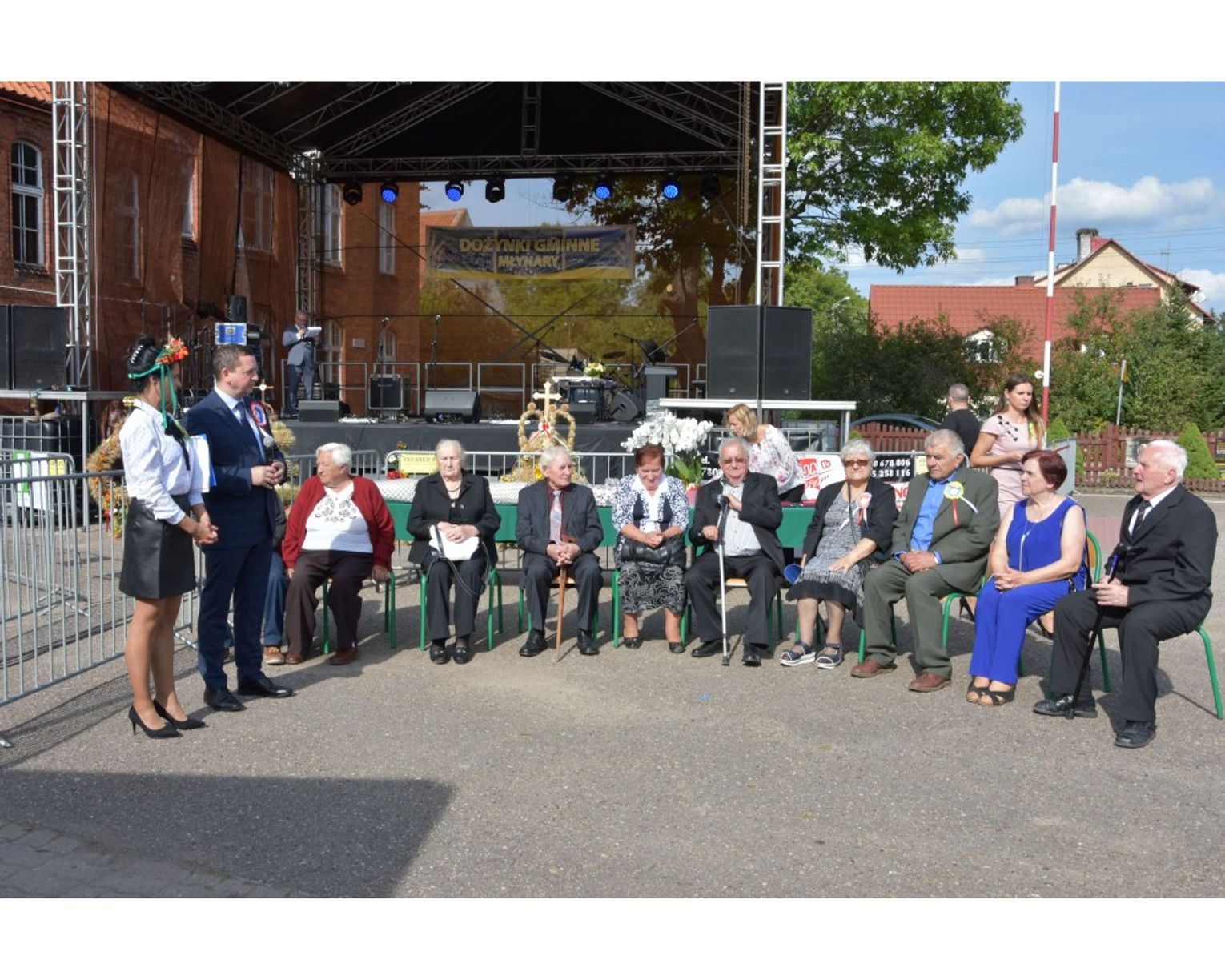 W dalszej części Pan Burmistrz w szczególny sposób powitał dostojnych Jubilatów: Państwa Wilhelminę i Michała Horbów, Państwa Halinę i Mariana Kłapot, Państwa Helenę i Józefa Kołodziej, Państwa Janinę i Kazimierza Modrzejewskich, Państwa Ewelinę i Ryszarda Szablińskich. Następnie Pan Burmistrz wręczył wyróżnionym małżeństwom medale „Za długoletnie Pożycie Małżeńskie” nadane przez Prezydenta Rzeczypospolitej Polskiej.