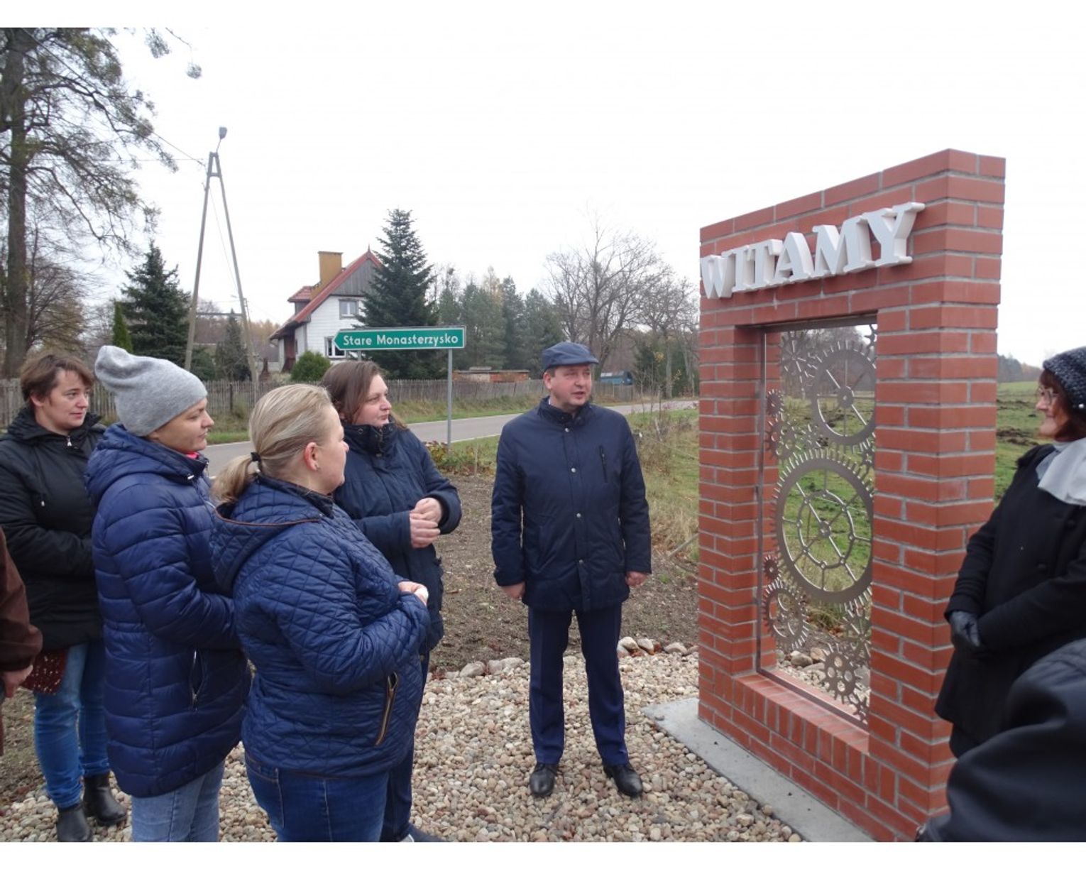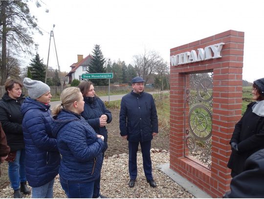 W ramach zadania zagospodarowano teren na wjeździe do miejscowości poprzez budowę witacza, tablicy informacyjnej oraz ławki z konstrukcji murowanej z cegły klinkierowej. Elementy dekoracyjne witacza wykonane z metalu na wzór mechanizmu zegara, nawiązują do tematu przewodniego wsi „Wieś dobrego czasu”. Mieszkańcy samodzielnie uporządkowali i utwardzili kruszywem kamiennym teren wokół witacza w ramach pracy własnej.