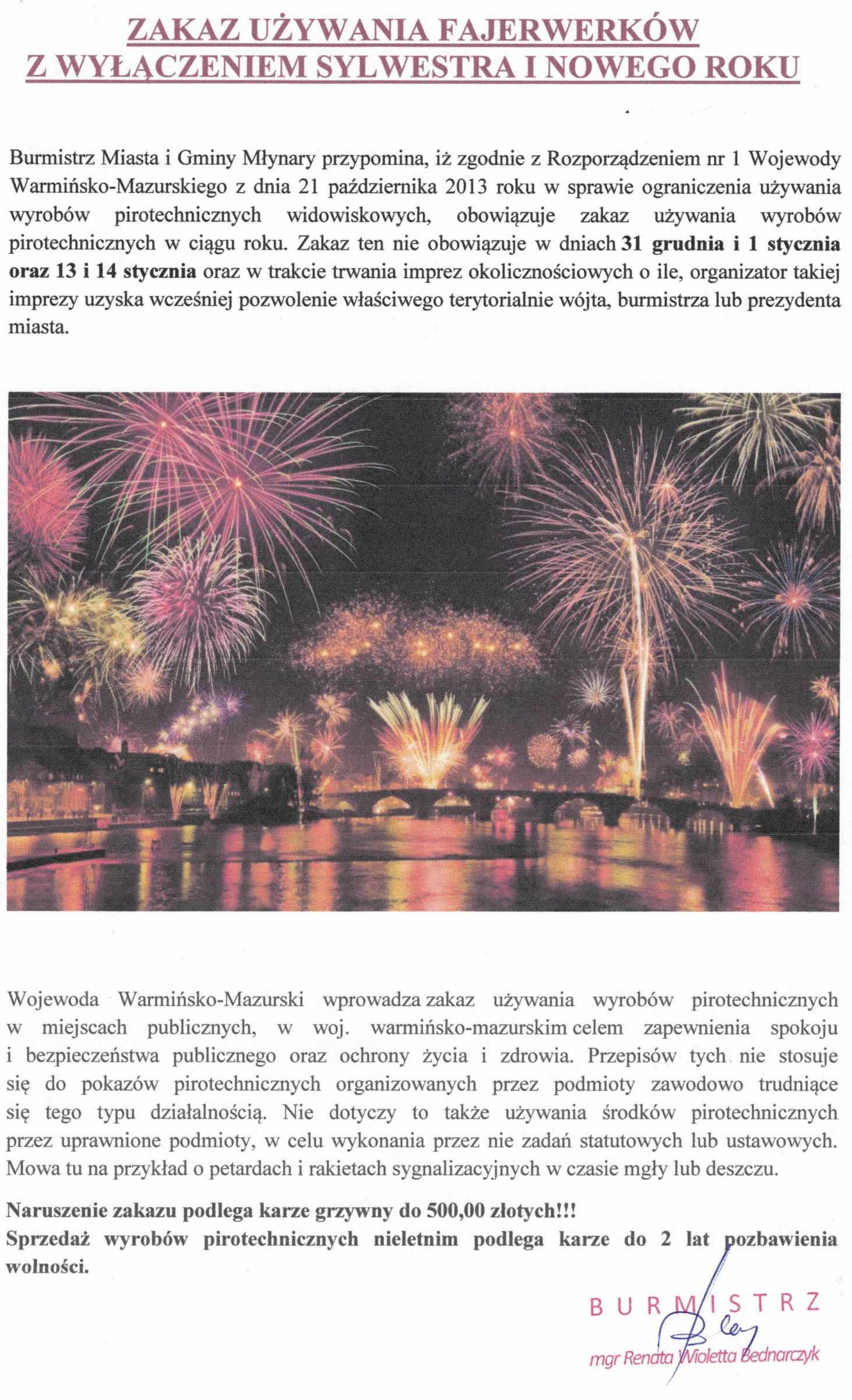 ROZPORZĄDZENIE WOJEWODY WARMIŃSKO-MAZURSKIEGO W SPRAWIE OGRANICZENIA UŻYWANIA WYROBÓW PIROTECHNICZNYCH