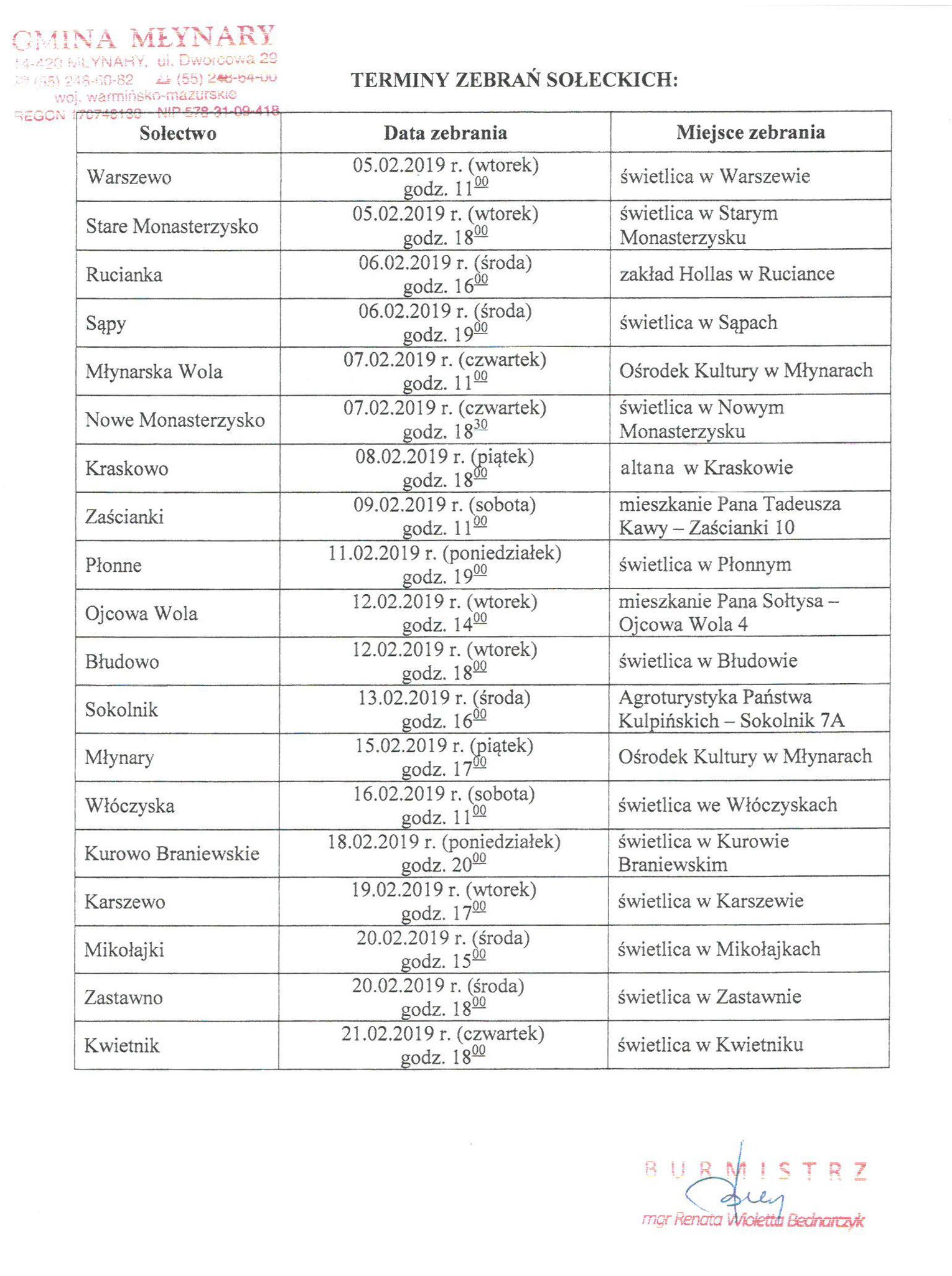 Terminy zebrań sołeckich