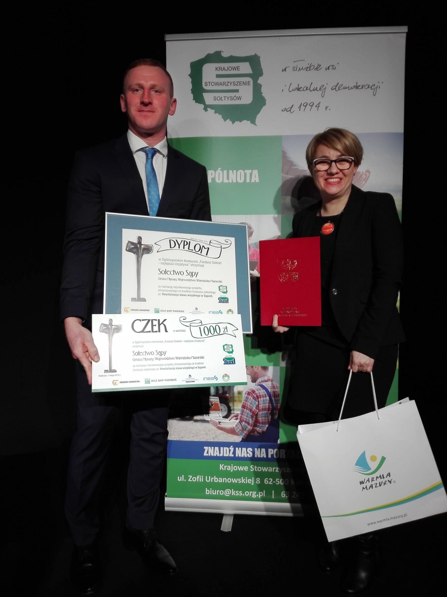 Organizatorem konkursu było Krajowe Stowarzyszenie Sołtysów przy współpracy z Samorządami Województw. Do konkursu zgłoszono prawie 100 projektów z 15 województw. Konkurs podzielony był na dwa etapy – pierwszy wojewódzki, drugi – ogólnopolski. Ideą konkursu była aktywizacja społeczności wiejskich do podejmowania inicjatyw, które posłużą wzmocnieniu wspólnoty mieszkańców oraz korzystnie wpływają na poprawę warunków życia na wsi. Konkurs skierowany był do wszystkich sołectw, które w latach 2010-2018 realizowały projekty finansowane w ramach funduszu sołeckiego lub, w których fundusz był wkładem własnym. Sołectwo Sąpy z projektem ,,Rewitalizacja stawu wiejskiego w Sapach” zwyciężyło w Województwie Warmińsko-Mazurskim i tym samym zakwalifikowało się do II etapu konkursu. W finale konkursu Sołectwo Sąpy otrzymało dyplom za realizację najciekawszego projektu sfinansowanego z funduszu sołeckiego i otrzymało czek o wartości 1 000,00 zł.