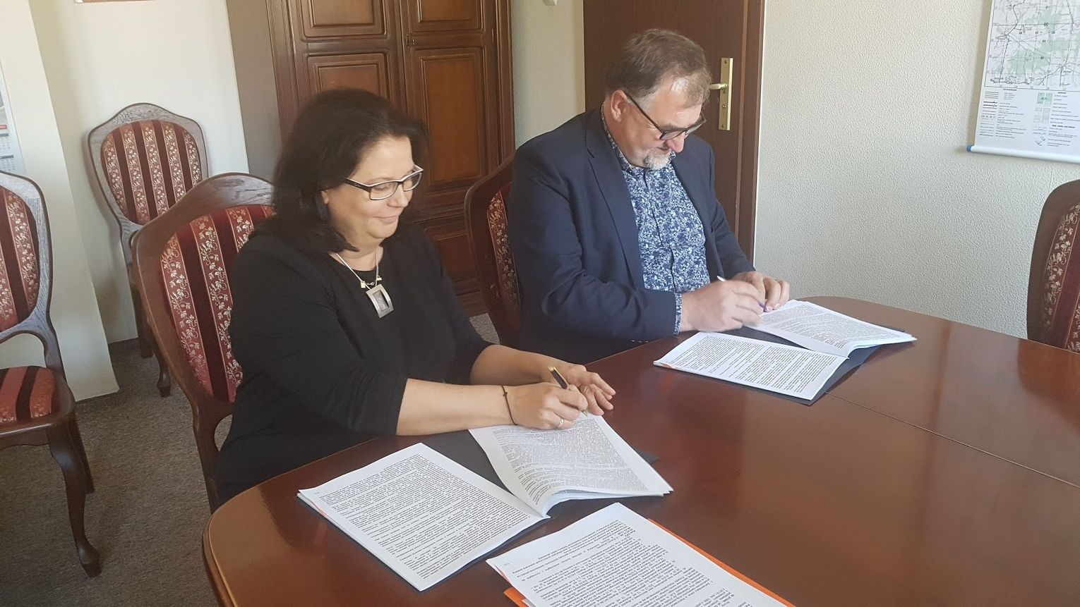 W dniu 30 kwietnia 2019 r. w Urzędzie Miasta i Gminy w Młynarach Pani Renata Bednarczyk-Burmistrz Miasta i Gminy Młynary przy kontrasygnacie Skarbnika Miasta i Gminy Młynary zawarła umowę na realizację zadania pn. ,,Przebudowa nawierzchni dróg powiatowych Nr 2154N- ul. Osińskiego i Nr 2157N- ul. Staszica w Młynarach- II Etap” z właścicielem Przedsiębiorstwa Wielobranżowego ,,Zieja” Panem Ryszardem Zieją. Wykonawca zobowiązany jest do wykonania przedmiotowej umowy do dnia 21 października 2019 r. za kwotę 1 614 275,84 zł brutto.