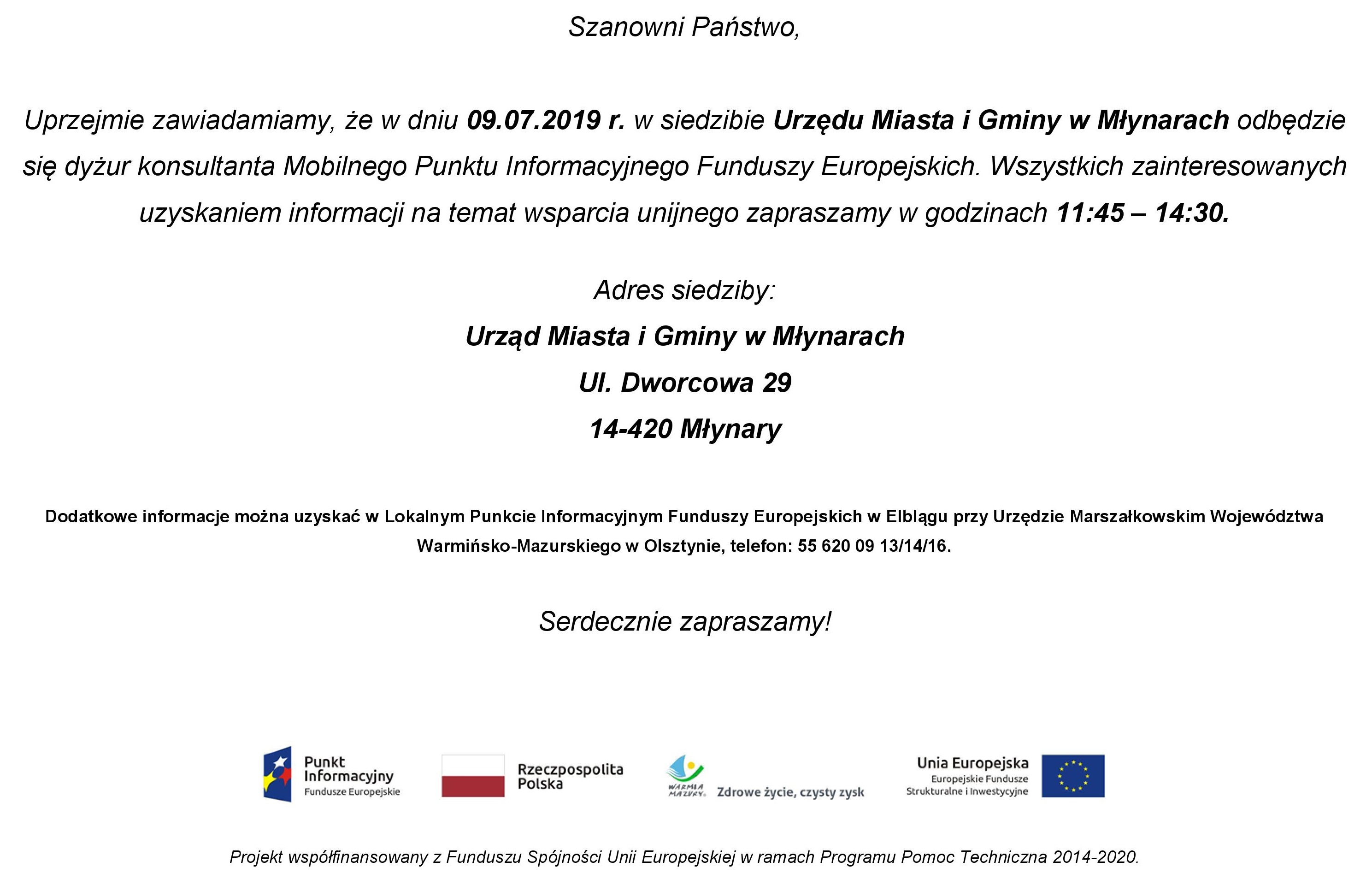 Dyżur konsultanta Mobilnego Punktu Informacyjnego Funduszy Europejskich