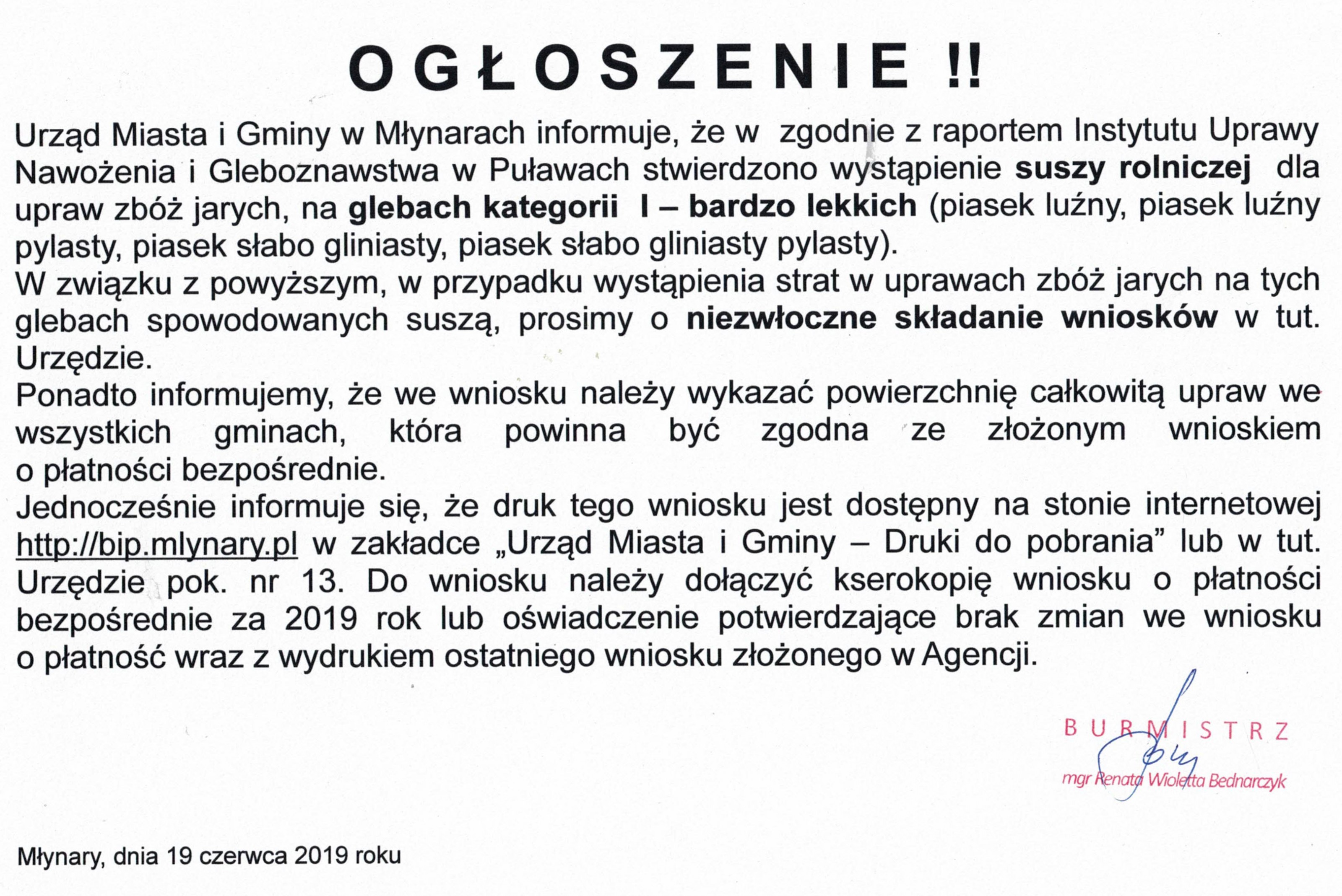 Wniosek do pobrania: http://bip.mlynary.pl/artykul/177/5210/wniosek-rolnika-o-oszacowanie-strat-2019-r