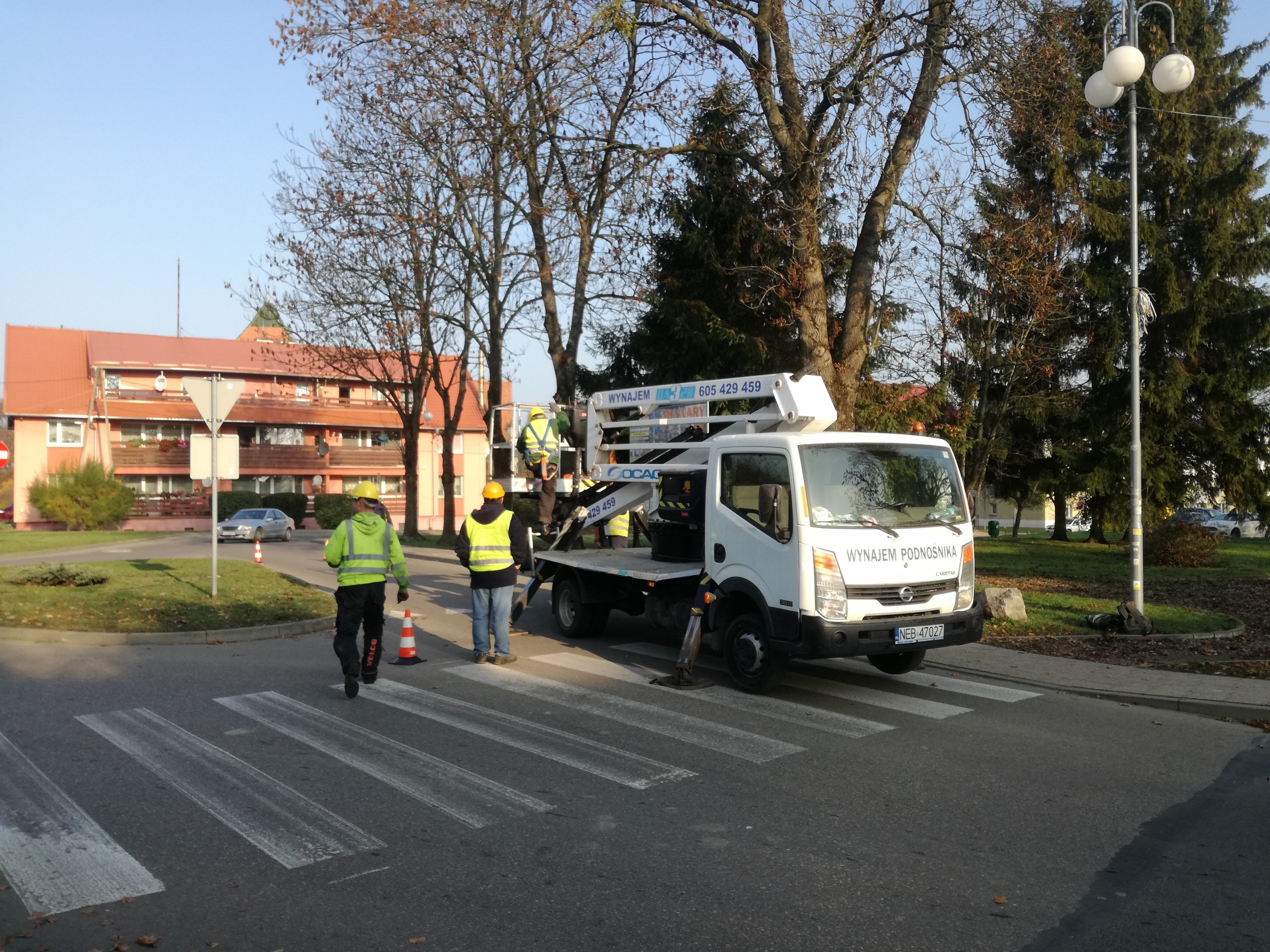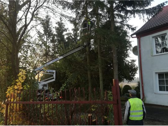 W czwartek 24 października 2019 roku na terenie Gminy Młynary wykonane zostały prace związane z wycinką drzew, usunięciem wiatrołomów, odsłonięciu lamp oświetlenia ulicznego, przeprowadzeniem zabiegów w koronach drzew polegających na usunięciu gałęzi obumarłych oraz nadłamanych. Przeprowadzono, także prace polegających na formowaniu kształtu koron drzew rosnących na terenie działek stanowiących własność Gminy Młynary oraz przy drogach gminnych za pomocą wysięgnika koszowego.