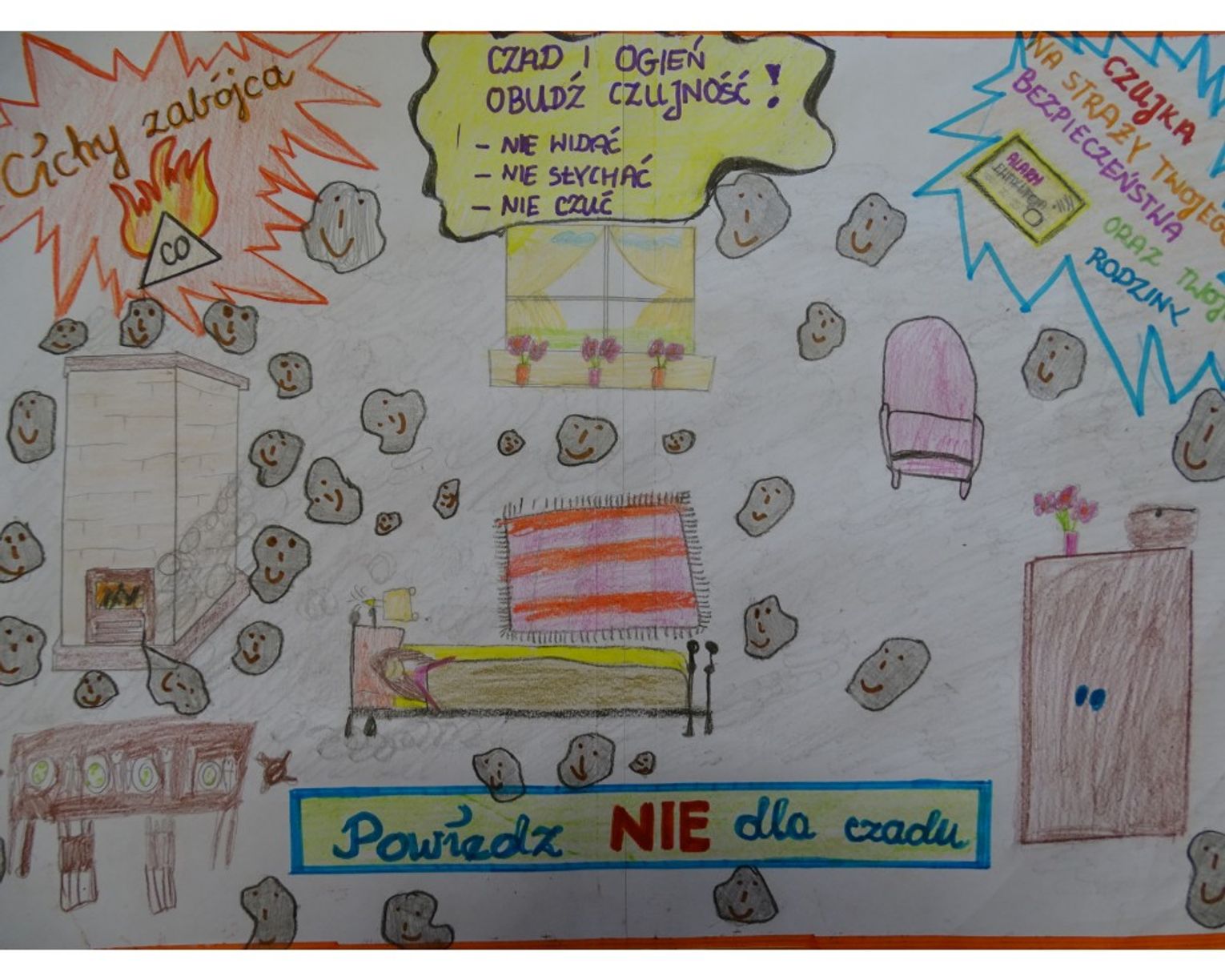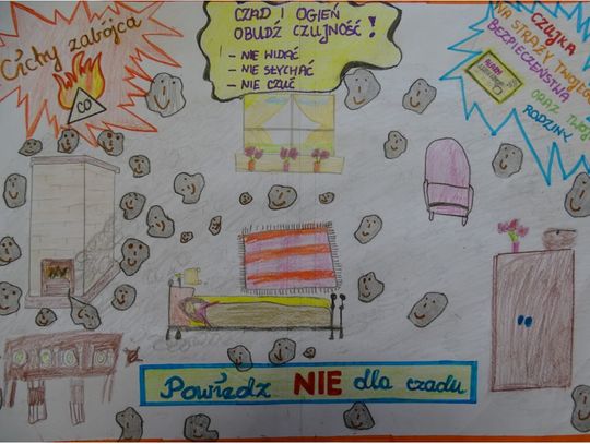 W piątek, 29 listopada 2019 r. zostały przeprowadzone gminne eliminacje zimowej edycji Powiatowego Konkursu Plastycznego 2019 dla dzieci i młodzieży pod hasłem „Ciche zatruwanie to czadu działanie”. Celem edukacyjnym konkursu było podniesienie poziomu wiedzy dzieci związanych z emisją tlenku węgla, zwrócenie uwagi dorosłych jakie korzyści niesie zamontowanie i właściwa eksploatacja czujnika dymu oraz kształtowanie właściwych zachowań związanych z bezpieczeństwem i pomocą innym ludziom.
