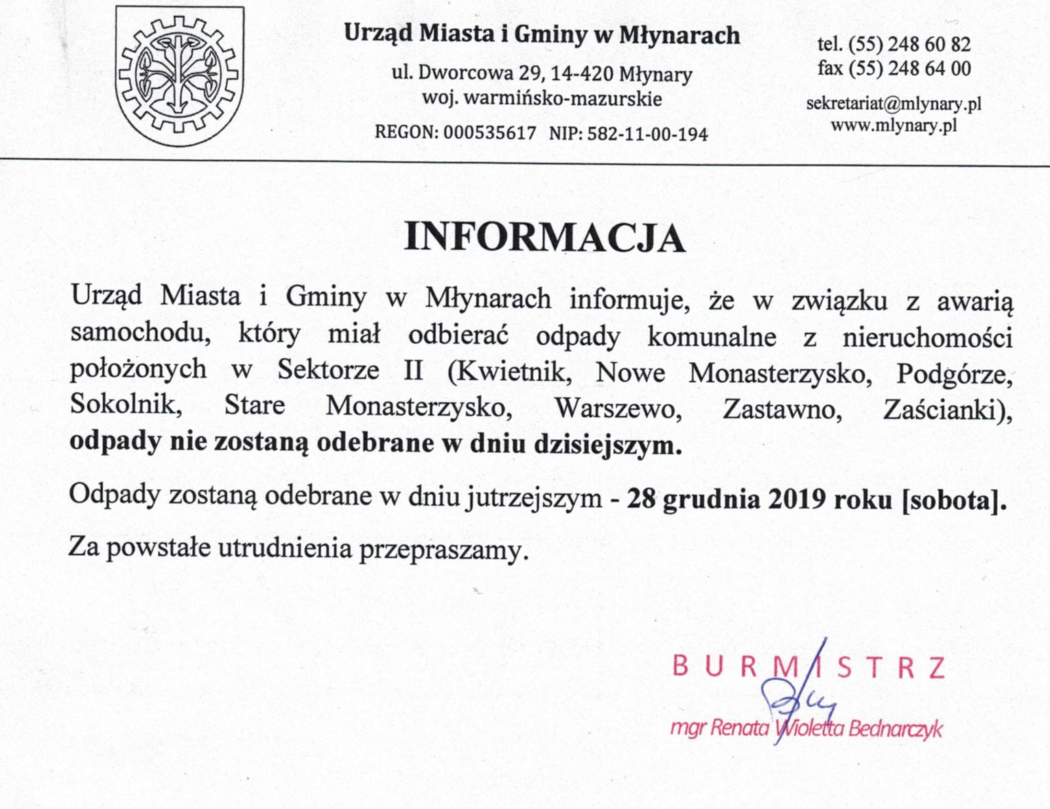 - Drugi przetarg pisemny nieograniczony na sprzedaż nieruchomości gruntowej zabudowanej, oznaczonej w ewidencji gruntów i budynków jako działka nr 113/1 i 113/2, obręb geodezyjny Błudowo, gm. Młynary