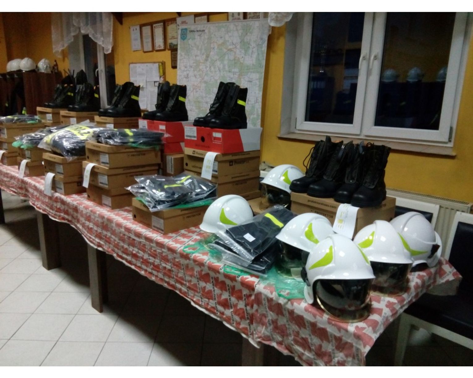 We wtorek, 26 listopada 2019 r. odbyło się kolejne przekazanie wyposażenia strażackiego. Mając na uwadze dobro i bezpieczeństwo Strażaków z gminy Młynary, tym razem zakupione zostało 38 par butów strażackich, 30 par rękawic, 21 sztuk hełmów strażackich oraz 1 komplet ubrania strażackiego Nomex. Na zakup wyposażenia otrzymaliśmy dotację w kwocie 40 000,00 zł z programu „5 000+ dla OSP” oraz kwotę 20 370,00 zł z Funduszu Składkowego Ubezpieczenia Społecznego Rolników. Łączna kwota pozyskana przez gminę Młynary to 60 370,00 zł. Dotychczasowy zakup uzbrojenia osobistego strażaków wyniósł 40 409,00 zł. Dalsze doposażania będą realizowane w grudniu.