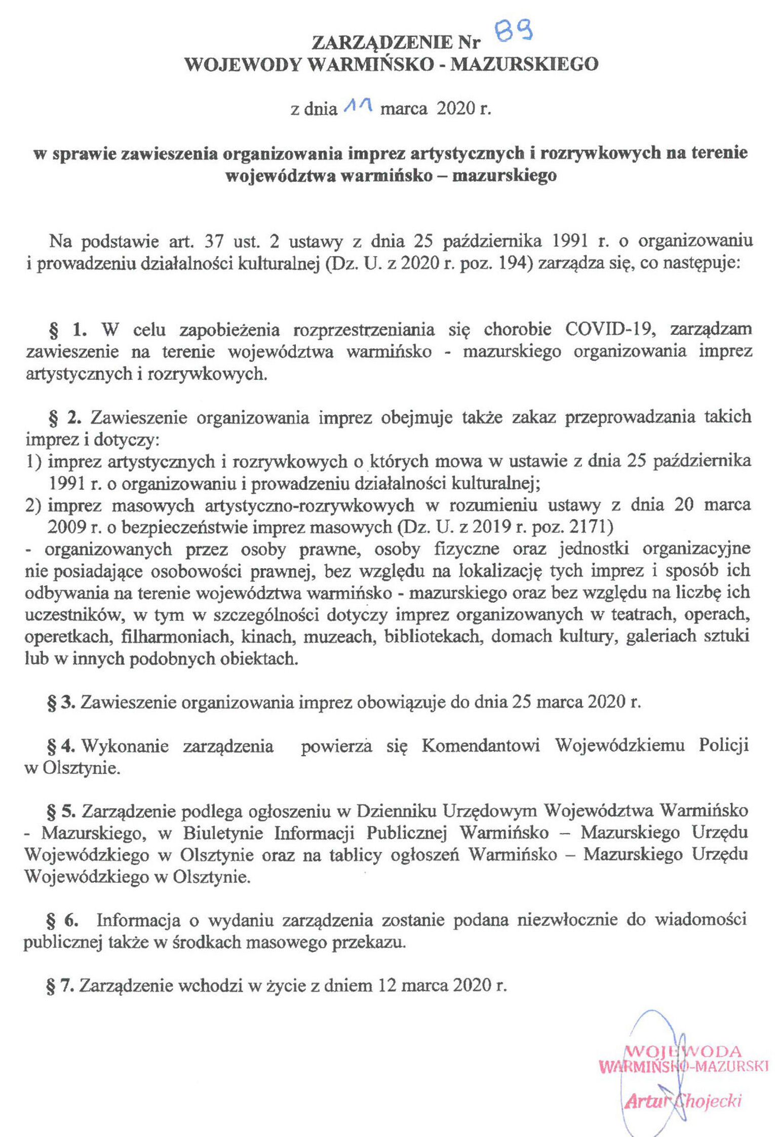 Zarządzenie Wojewody Warmińsko-Mazurskiego