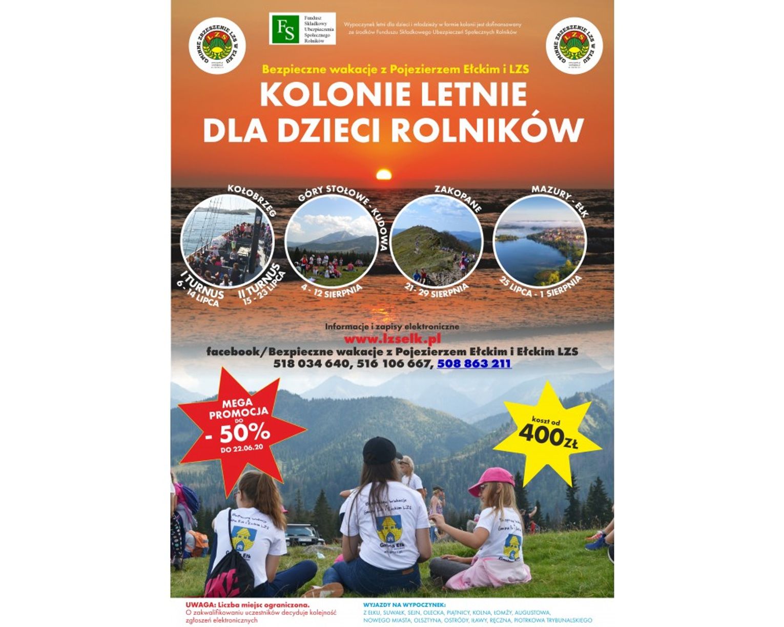 Kolonie dla dzieci rolników nad Morzem Bałtyckim, Górach Stołowych, Tatrach i Mazurach !!!
