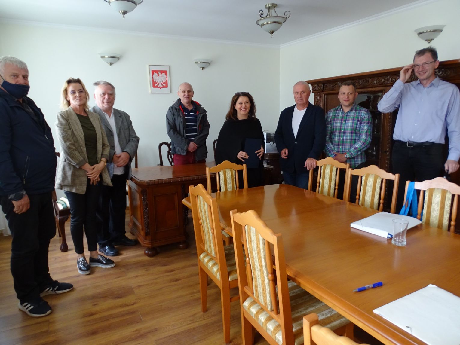 W dniu 14 maja Burmistrz Miasta i Gminy Młynary Pani Renata Wioletta Bednarczyk wraz ze Skarbnikiem Miasta i Gminy Młynary Panią Katarzyną Rynkowską podpisały z Panem Grzegorzem Gudeckim, właścicielem Zakładu Techniki Sanitarnej TECHSAN, umowę na realizację robót budowlanych i montażowych w zakresie modernizacji oczyszczalni ścieków w Młynarach.