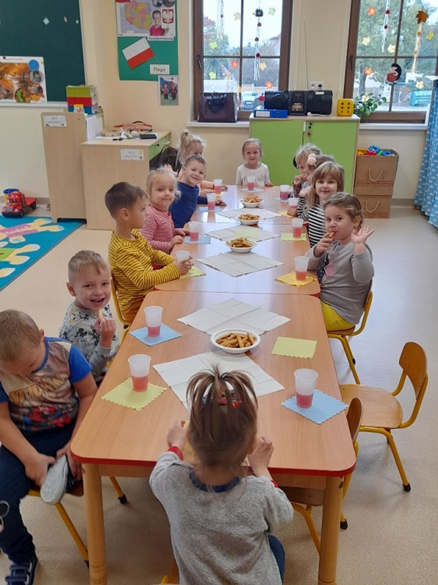 Grupa "Motylki" Dzień Dziewczynek uczciła w poniedziałek. W tym wyjątkowym dniu nie zabrakło niespodzianek, upominków oraz wspaniałej zabawy. Każda dziewczynka otrzymała prezent. Chłopcy składali dziewczynkom życzenia, śpiewali piosenkę, zaprosili do wspólnej zabawy przy muzyce. Poprzez swoje dobre zachowanie sprawiali radość koleżankom, a nauczycielka przypominała, że szacunek i uprzejmość należą się dziewczynkom każdego dnia, nie tylko od święta. Jak po każdej zabawie na dzieci czekał poczęstunek w postaci pysznych ciasteczek.