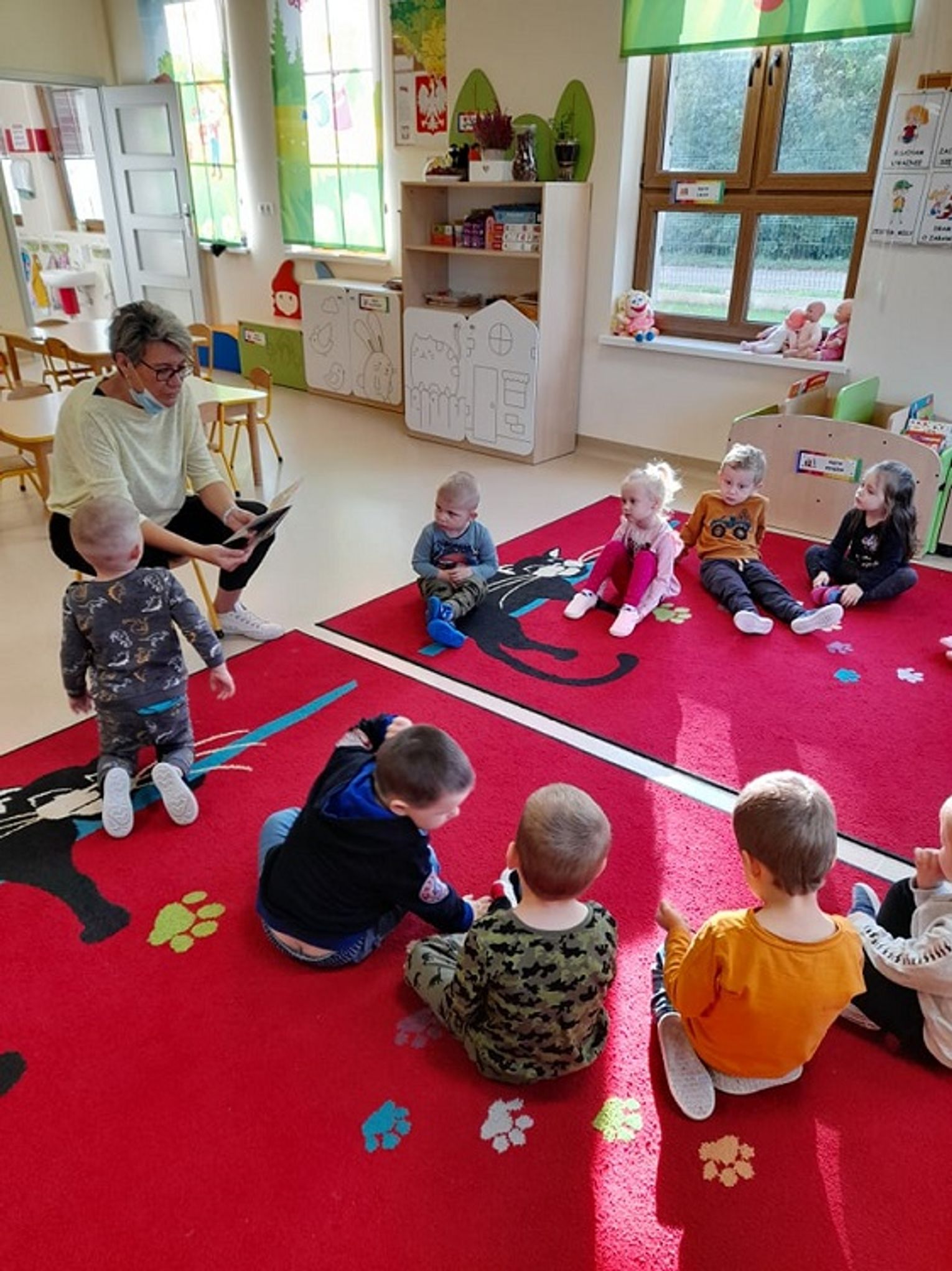 Dzień później - 29 września obchodziliśmy Ogólnopolski Dzień Głośnego Czytania. Tego dnia odwiedziły nas panie: Agnieszka Kościelska (nasza księgowa) oraz pani Agata Frąckiewicz (nauczycielka w grupie "Misiów" i "Lisków urwisków"), aby przeczytać "Pszczółkom" kilka wierszy naszego patrona - Jana Brzechwy.