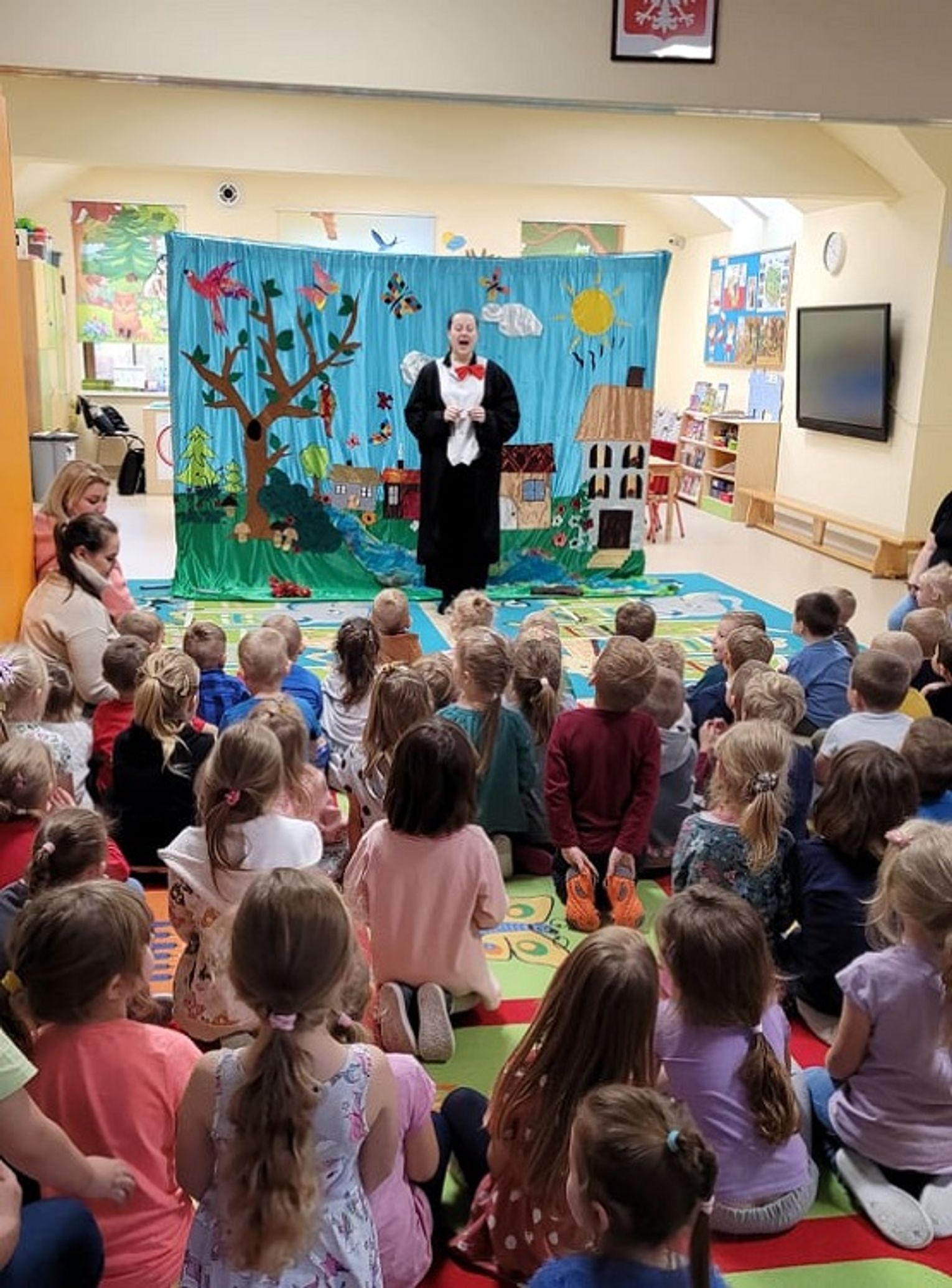 Dziś odwiedziło nas Studio Artystyczne "Arena" z przedstawieniem "Kozucha kłamczucha" inspirowanym opowieścią Janiny Porazińskiej o tym samym tytule.
