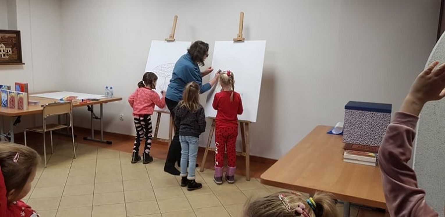 W spotkaniu wzięły udział przedszkolaki z grupy "Liski Urwiski" oraz uczniowie klasy Ib Szkoły Podstawowej w Młynarach. Dzieci wysłuchały fragmentu książki pani Magdaleny Jasny pt.: „Farmagia”, a potem bardzo czynnie uczestniczyły w prowadzonych przez nią warsztatach. Na zakończenie spotkania dzieci otrzymały zakładki do książki wraz z autografem autorki.