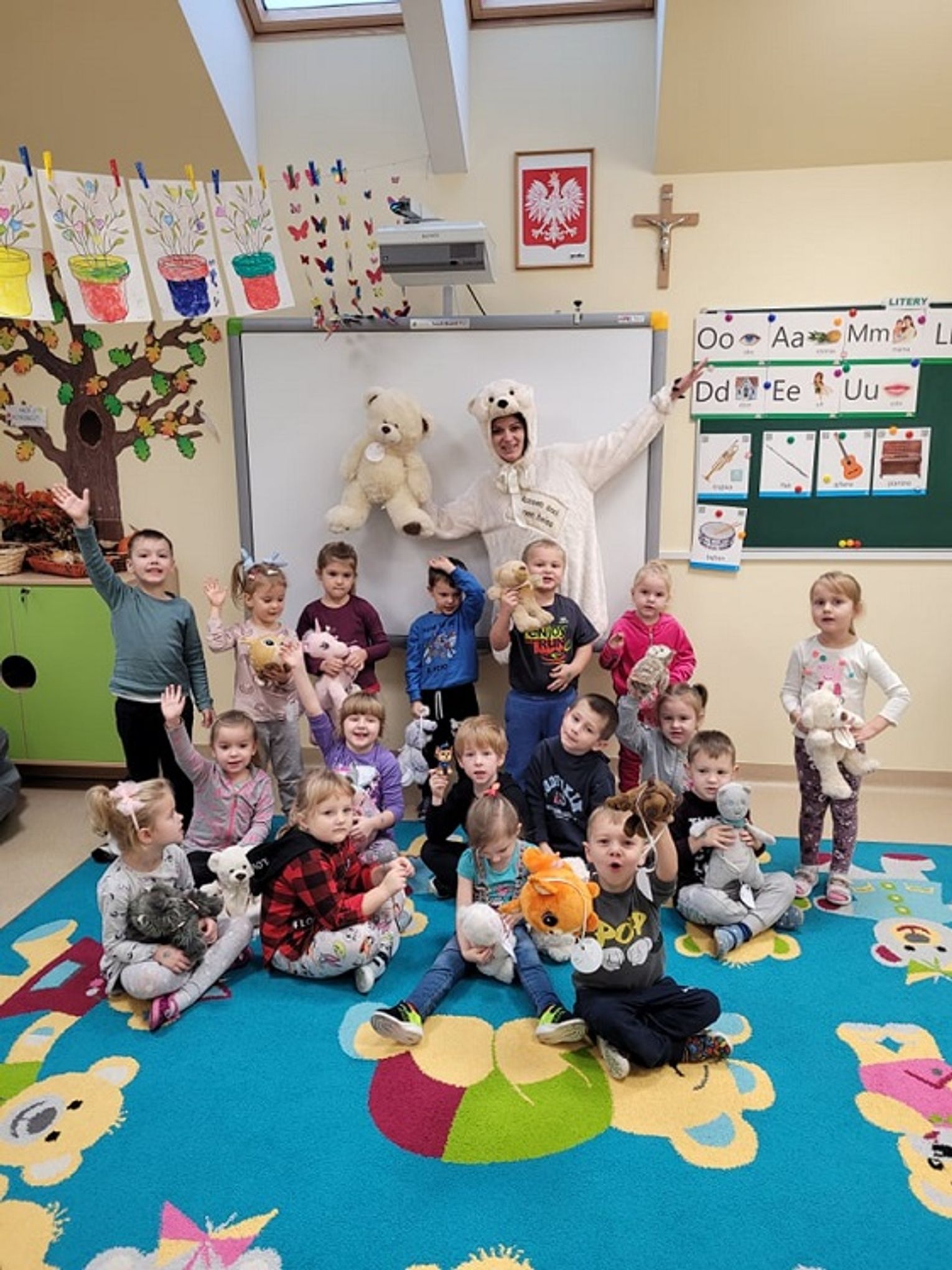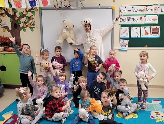 Największą niespodzianką była dla dzieci wizyta Misia, który chętnie się z nimi bawił, tańczył i pozował do zdjęć, a na koniec nagrodził pieczątką i specjalnie przygotowanym na ten dzień medalem.