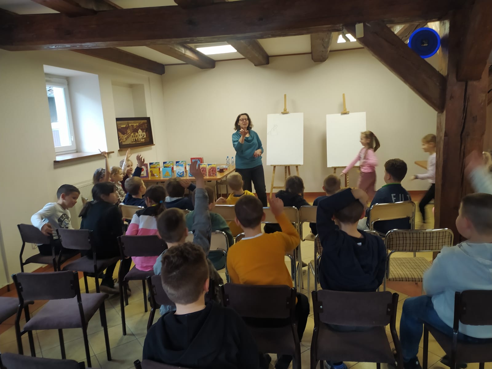 24 listopada w naszej bibliotece miało miejsce bardzo twórcze spotkanie z pisarką Panią Magdaleną Jasny, autorką "Farmagii". Artystka przytoczyła fragment swojej książki, a następnie razem z uczestnikami spotkania stworzyła nieoczywiste hybrydy. Warto dodać, że Pani Magdalena jest grafikiem i tworzy piękne ilustracje, które zdobią niejedną książkę oraz czasopismo dla dzieci i młodzieży. Zaś (już) dorośli czytelnicy mogą znać naszego Gościa z dziecięcych programów telewizyjnych.