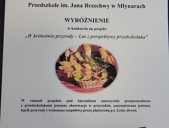NASZE PRZEDSZKOLE OTRZYMAŁO WYRÓŻNIENIE