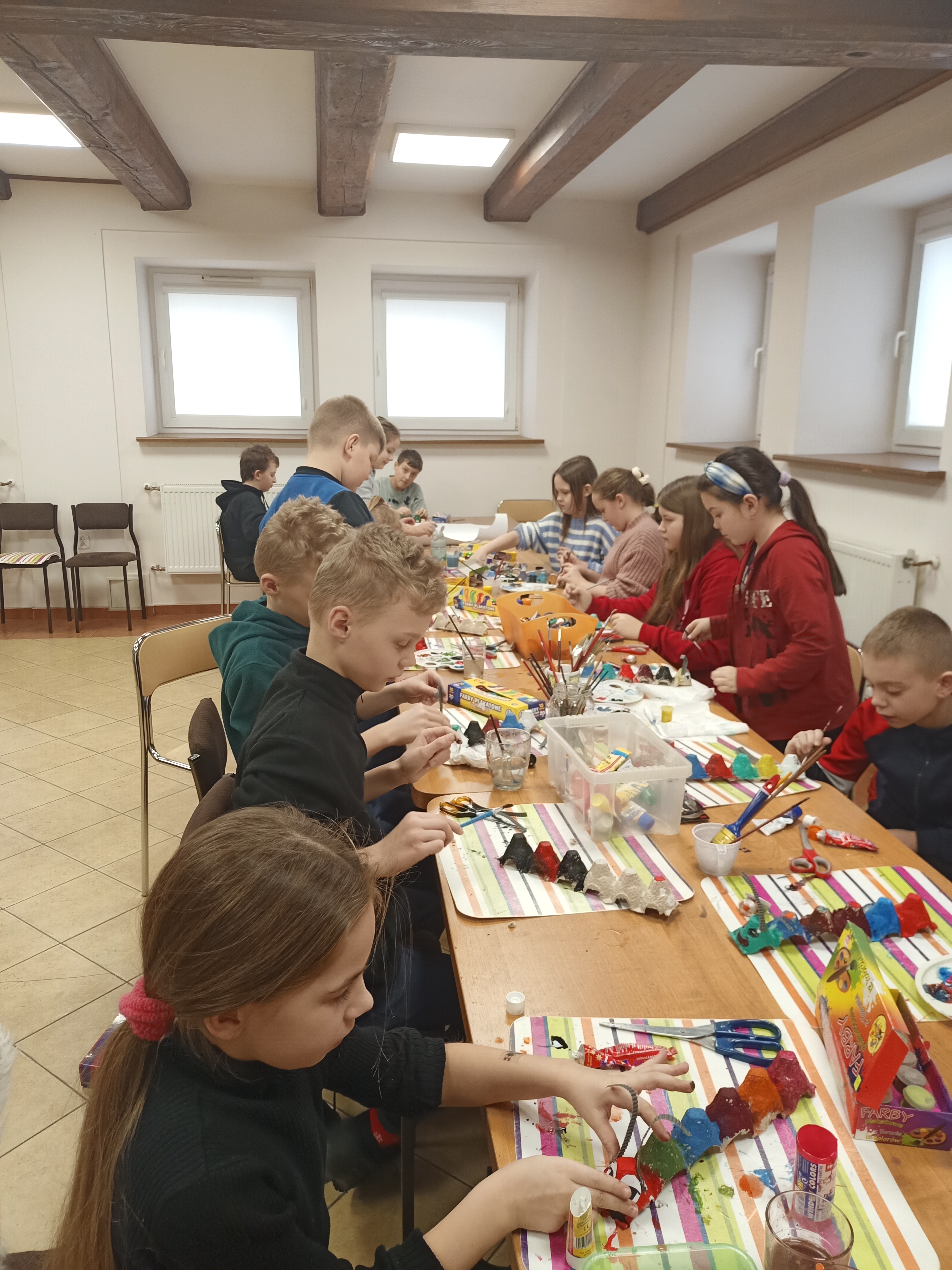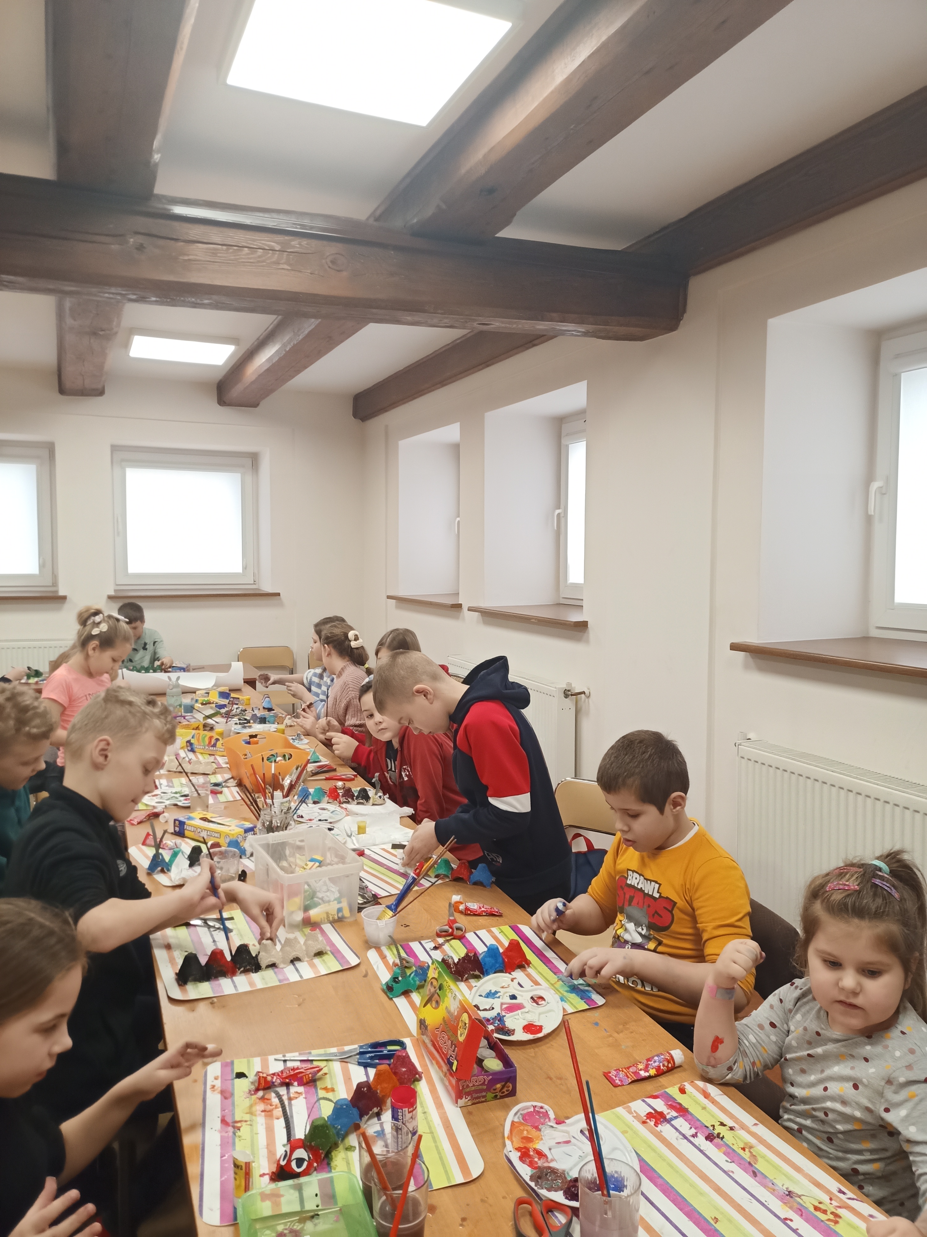 Każdy mógł znaleźć coś dla siebie i miło spędzić wolny czas. Ci, którzy zdecydowali się spędzić ferie w Ośrodku Kultury mogli m.in. skorzystać z oferty kina. Wyświetlaliśmy seanse dla dzieci, młodzieży i dorosłych. Odwiedziliśmy Nowe Monasterzysko, gdzie na świetlicy odbyła się projekcja bajki dla dzieci. Zadbaliśmy również o aktywność fizyczną. W pierwszym tygodniu odbyły się zajęcia taneczne, a niemal każdego dnia ferii można było zagrać w piłkarzyki, bilard czy tenisa stołowego. Wiele dzieci skorzystało z oferty zajęć kreatywnych i plastycznych, podczas których powstały piękne prace.