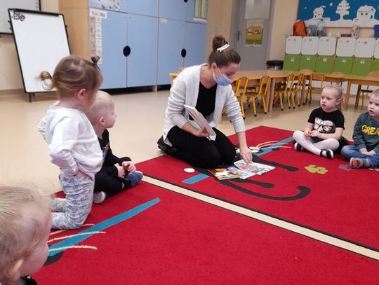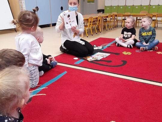 Dnia 8 lutego grupę "Pszczółek" odwiedziła Pani Katarzyna Mościcka-Pisarska z Biblioteki Publicznej w Młynarach.