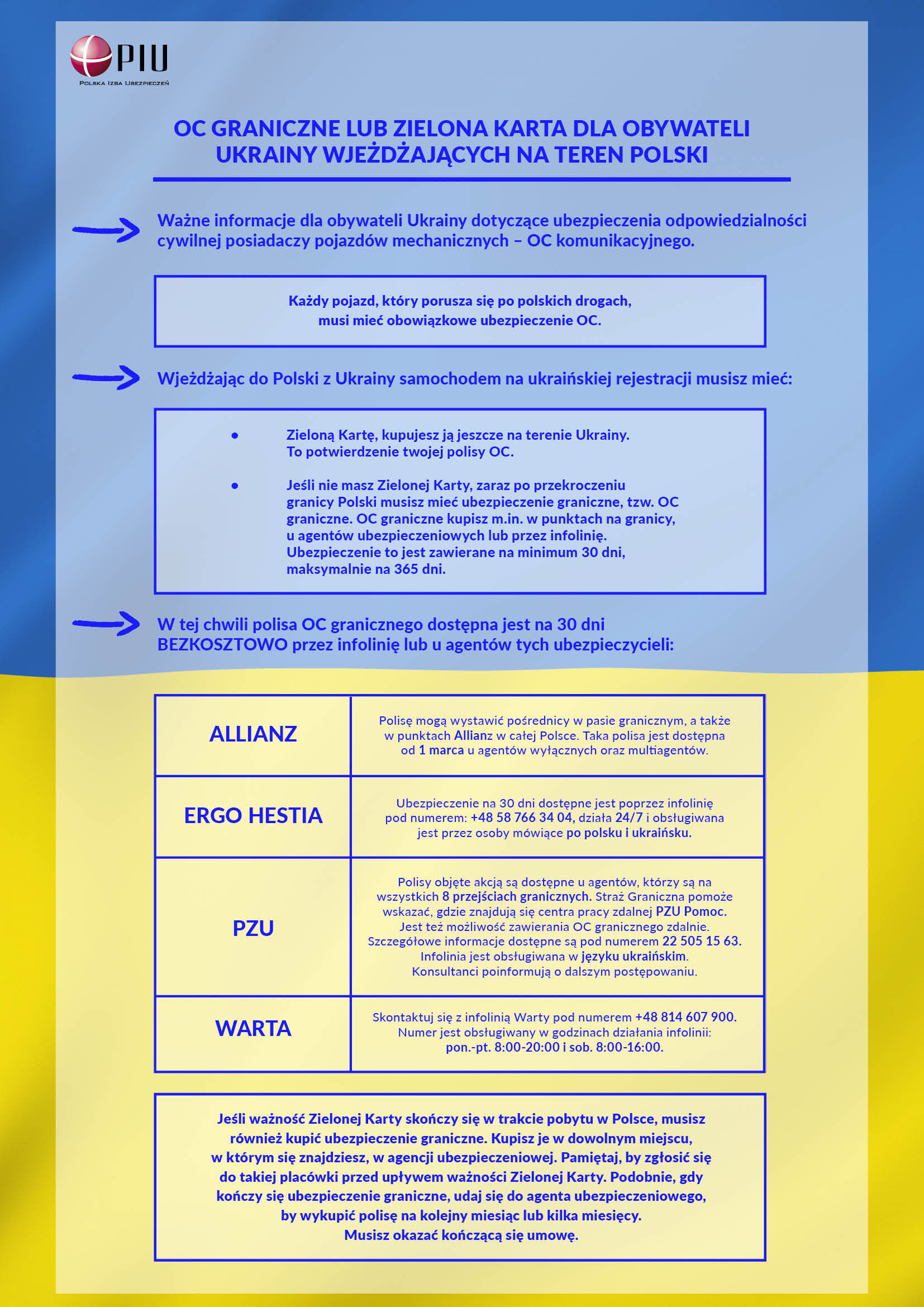 Informacja o zielonej karcie dla obywateli Ukrainy / Інформація про грін-карту для громадян України