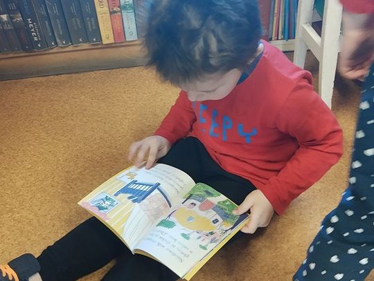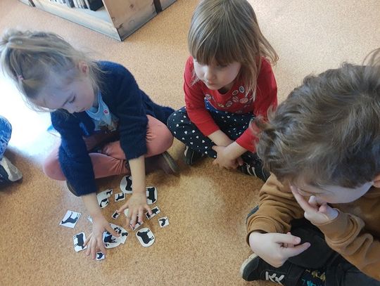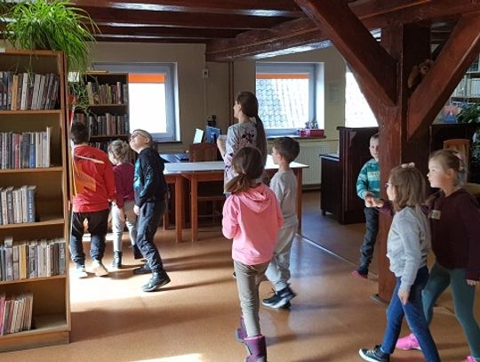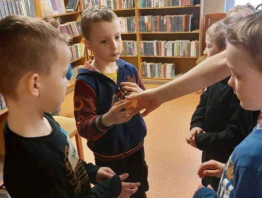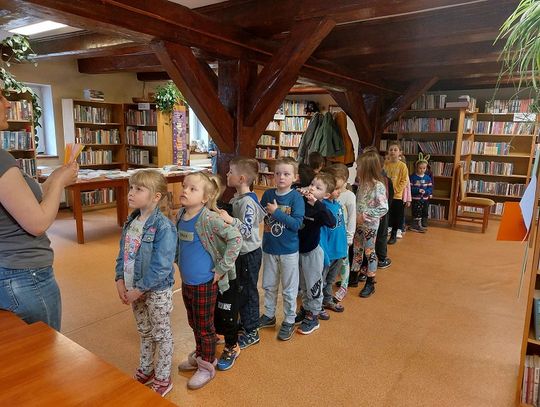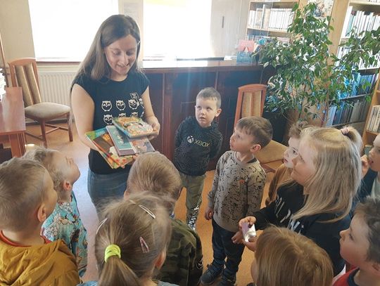 W poniedziałek 28 marca jako pierwsze zawitały w bibliotece "Misie", które nie tylko miały okazję poprzeglądać zgromadzone na miejscu książki i zobaczyć, jak wypożycza się wybrane pozycje, ale także rozwiązywały zagadki o zwierzętach.