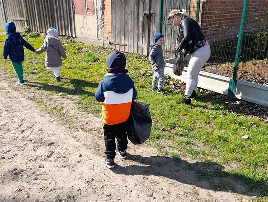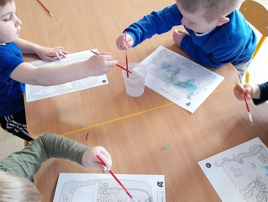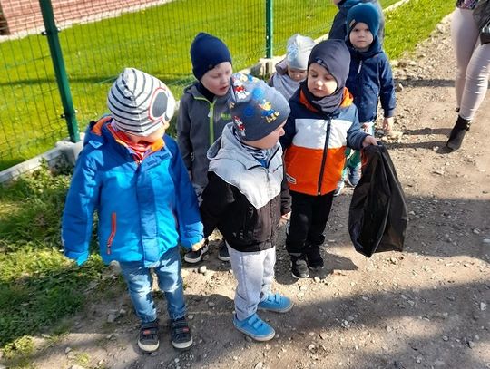 "Pszczółki" rozpoczęły ten dzień od obejrzenia filmu edukacyjnego "Karolek i Dzień Ziemi", z którego dowiedziały się, jak dbać o środowisko i otaczającą nas przyrodę. Następnie pracowały w parach, układając puzzle przedstawiające naszą planetę. Wiele radości sprawiła im także magiczna kolorowanka wodna. A tuż przed obiadem wyszliśmy na spacer, by posprzątać teren wokół przedszkola. Po wielu zajęciach poświęconych temu wyjątkowemu dniu, dzieci już wiedzą, że dla dobra naszej planety należy: sadzić drzewa i pielęgnować rośliny, dbać o przyrodę, oszczędzać wodę i prąd, segregować śmieci i ograniczać zużycie plastiku.