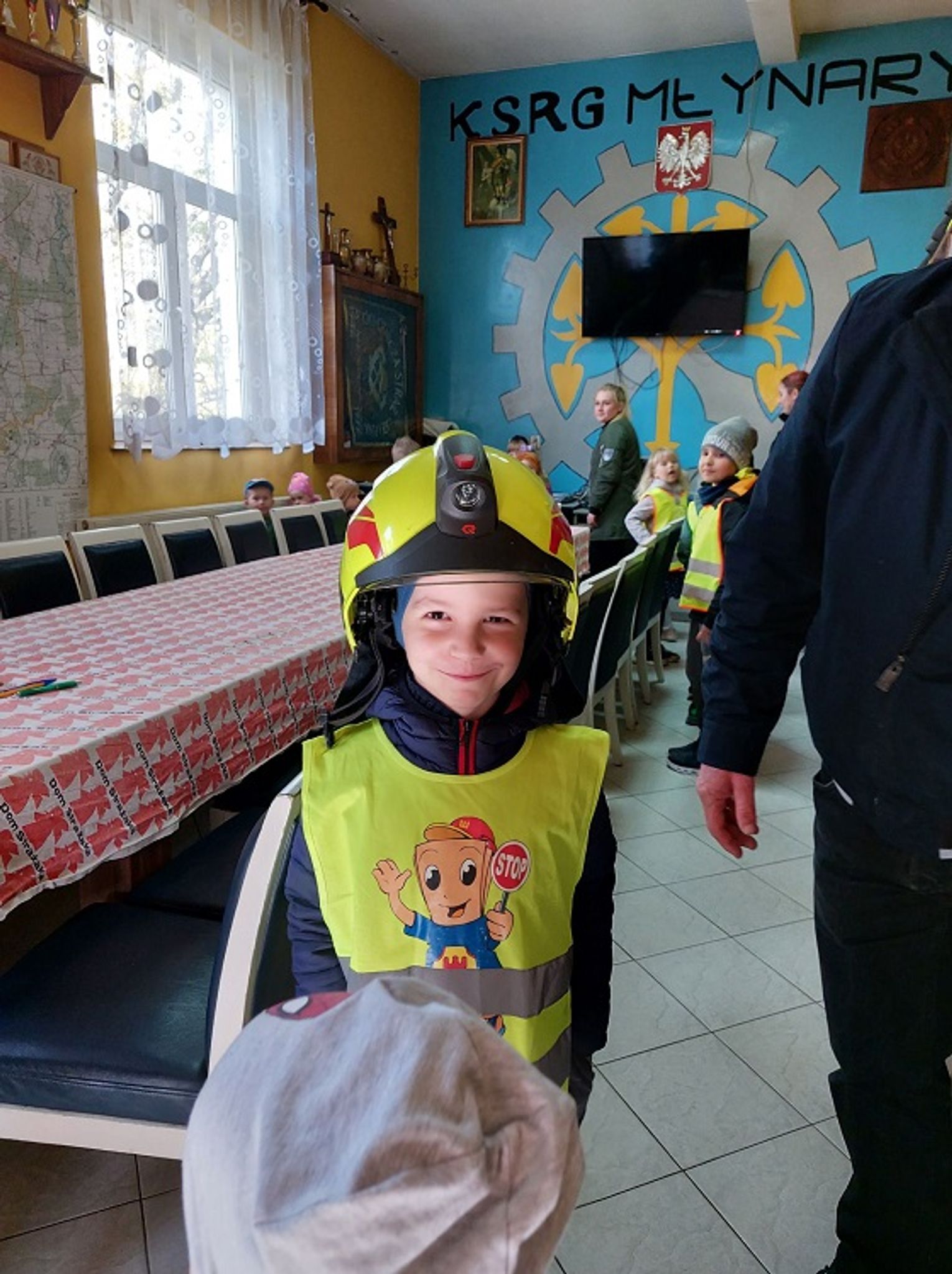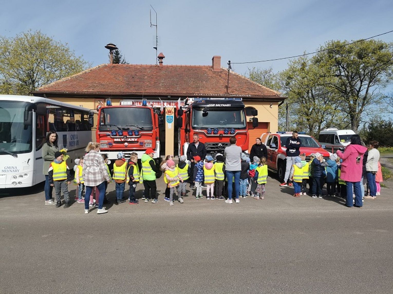 Z tej okazji wszystkie grupy przedszkolne odwiedziły remizę strażacką w Młynarach. Dzięki uprzejmości naszych strażaków z Ochotniczej Straży Pożarnej dzieci miały okazję zobaczyć z bliska wozy bojowe i sprzęt ratowniczo-gaśniczy używany w różnego rodzaju akcjach oraz posłuchać, na czym polega praca strażaków. W tak ważnym dniu nie mogło również zabraknąć podziękowań dla naszych dzielnych ochotników za ich trud, poświęcenie i narażanie życia dla innych.