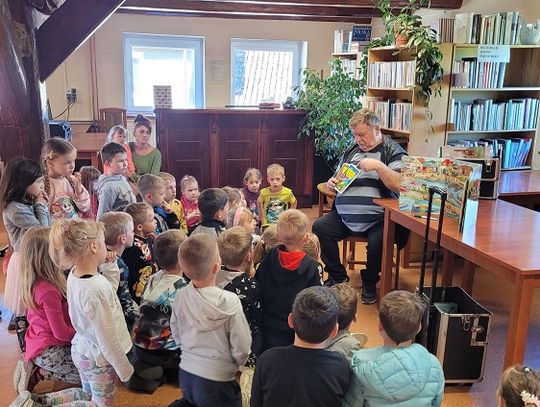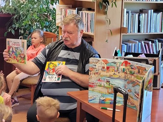Pan Wiesław Drabik jest autorem ponad 200 książek dla dzieci. Podczas dzisiejszego spotkania pan Wiesław zaprezentował "Wiewiórkom", "Liskom urwiskom", "Misiom" i "Motylkom" swoje wybrane utwory, opowiedział o tym, jak został pisarzem oraz przeprowadził quiz, podczas którego dzieci zostały nagrodzone nie tylko naklejkami i książkami, ale także naprędce wymyślonymi na ich cześć rymowankami, np.: