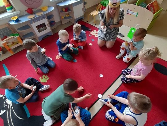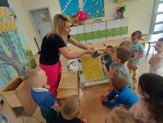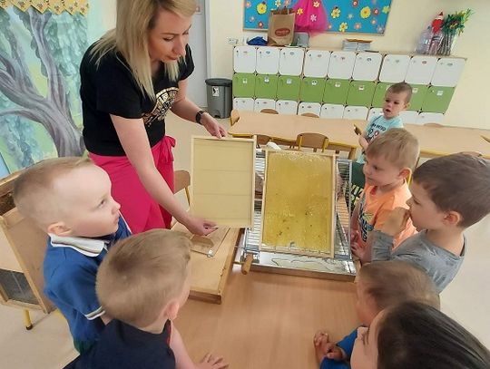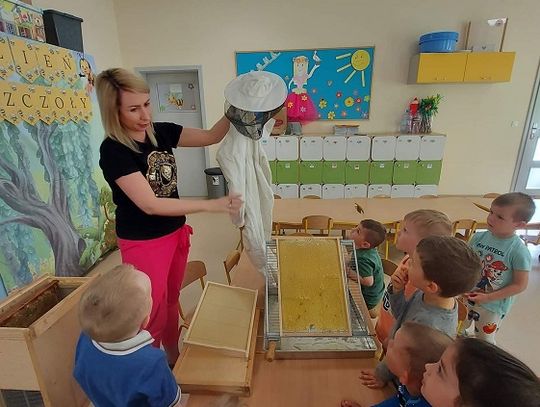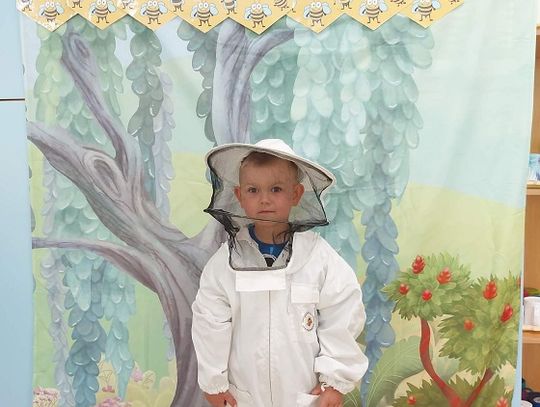 Oczywiście nie mogło być inaczej i nasza najmłodsza grupa "Pszczółki" również świętowała ten dzień. Na podstawie obejrzanego filmu przedszkolaki poszukiwały odpowiedzi na następujące pytania: Kto mieszka w ulu? Co pszczoły zbierają z kwiatów i w jakim celu? Jak pomagać pszczołom? Jak powstaje miód? Dzieci miały okazję spróbować świeżego miodu prosto z plastra, założyć strój pszczelarza oraz zrobić zdjęcie na specjalnej ściance. Po obiedzie grupę odwiedziła pani logopedka - Magda Dietrych, która przygotowała dla "Pszczółek" różne zabawy logopedyczne, a one ćwicząc swoje buziaki bzzzyczały jak prawdziwe.