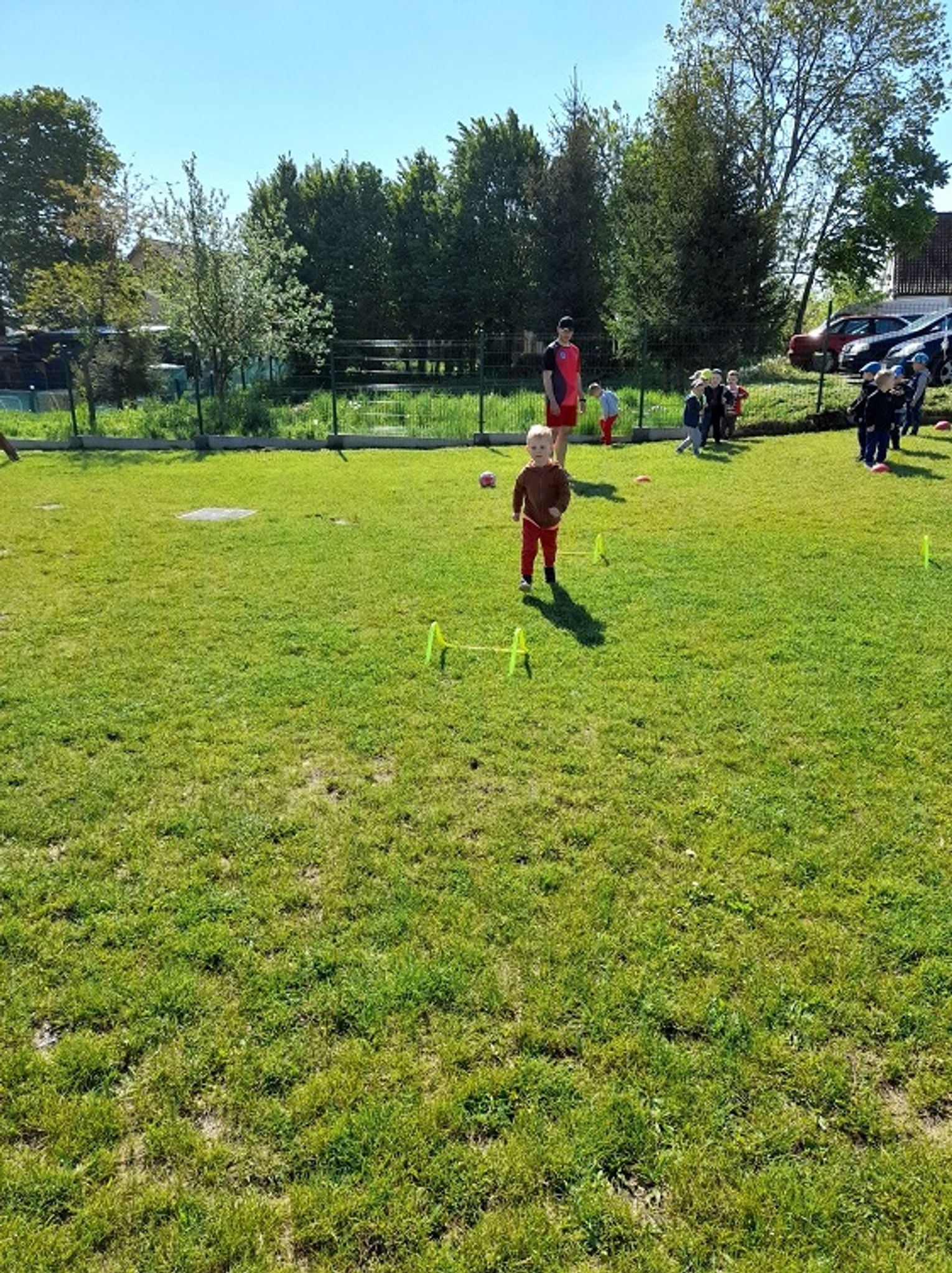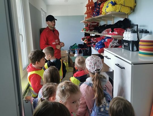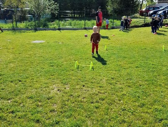Dlatego postanowiliśmy z tej okazji zorganizować zajęcia sportowe dla naszych przedszkolaków. Dzieci z oddziału "Pszczółki" ćwiczyły na przedszkolnym placu zabaw, natomiast cztery pozostałe grupy wybrały się w piątek 3 czerwca na Stadion Miejski w Młynarach. Przedszkolaki z ogromnym zainteresowaniem zwiedzały siedzibę Klubu Sportowego Syrena "Spomlek" Młynary, a także trybuny i ławkę zawodników. Wszystkie dzieci wzięły udział w zajęciach sportowych poprowadzonych przez pana Kornela Wieczorka - v-ce Prezesa Klubu, jak i czynnego piłkarza. Był berek, były poprzeczki, slalomy i strzelanie bramek, których dzielnie broniły panie Nauczycielki. Dzieci, mimo że tego dnia wróciły do przedszkola bardzo zmęczone, już dopytują o kolejne zajęcia.