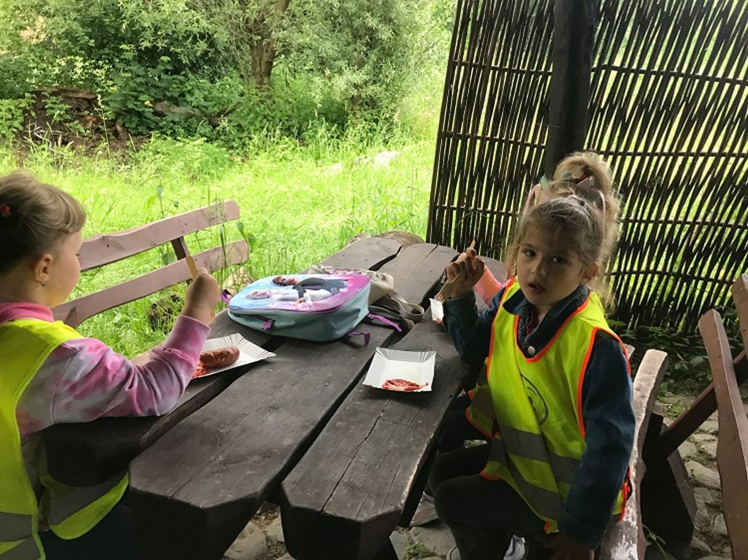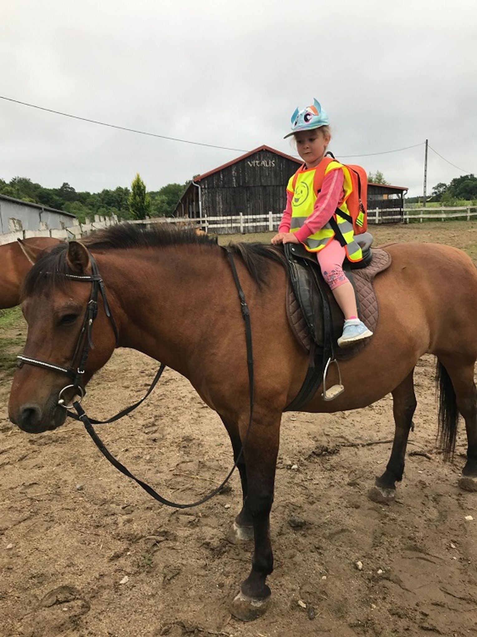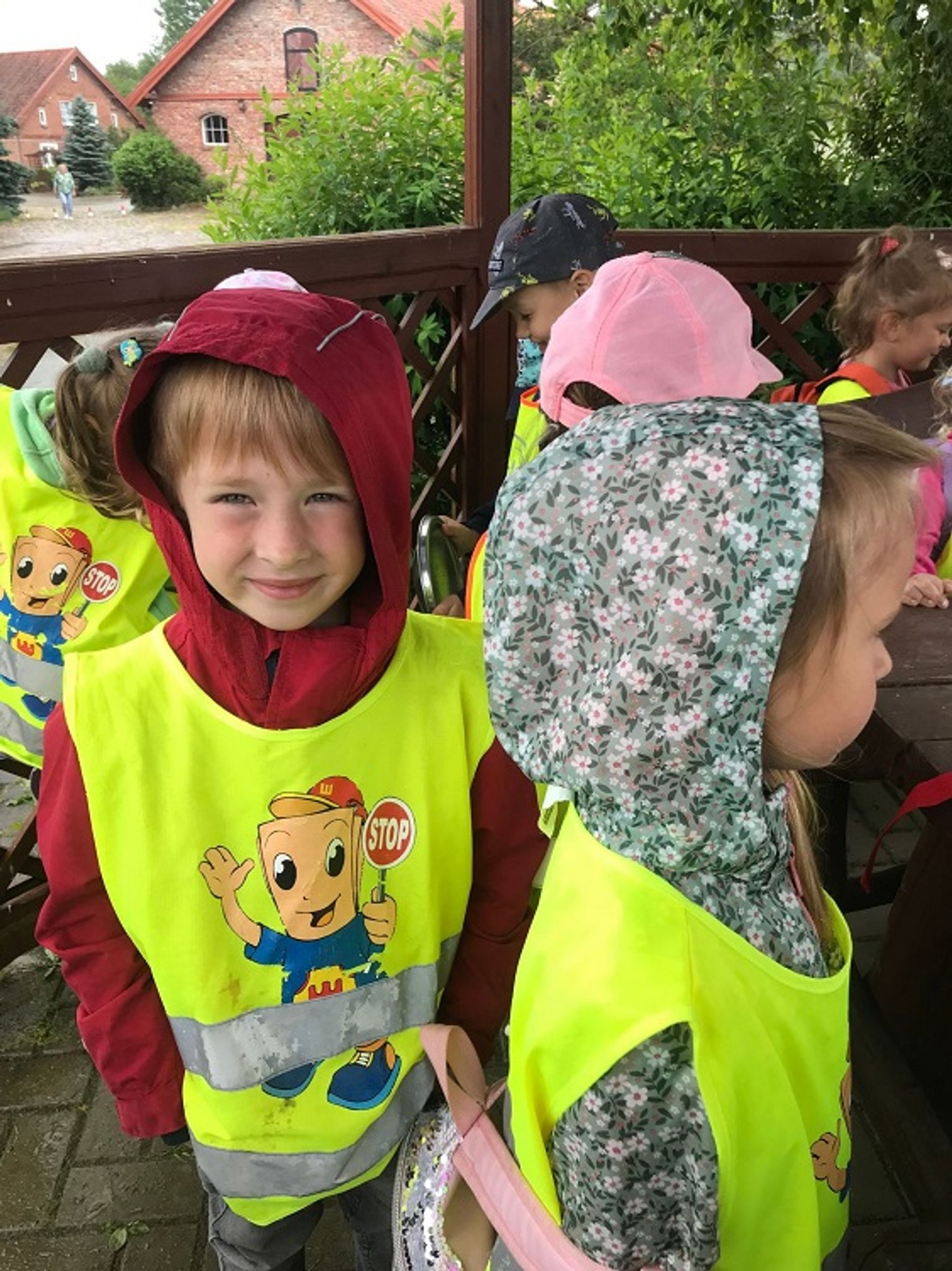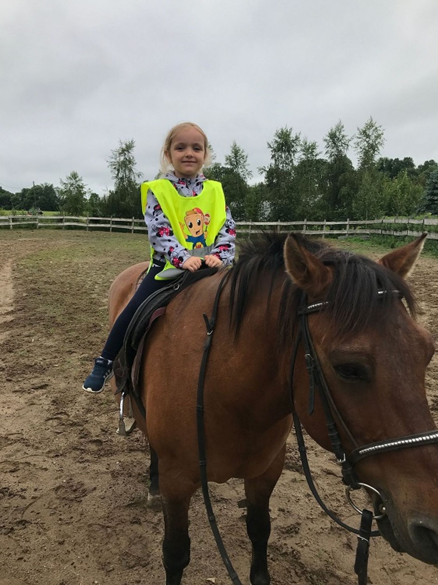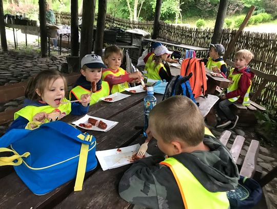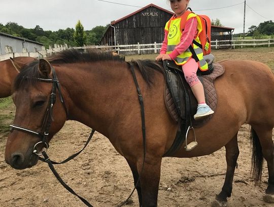 Przedszkolaki zaczęły swoją wizytę w gospodarstwie od przejażdżki wozem ciągniętym przez traktor. Następnie chętni, czyli prawie wszyscy, mogli przejechać się konno. W planie pobytu znalazło się także karmienie kóz i owiec, a ostatnim punktem było ognisko, podczas którego dzieci zajadały się nie tylko kiełbaską, ale mogły także spróbować pieczonej na miejscu drożdżówki i swojskiego kompotu. Mimo że pod koniec wyjazdu trochę popadało, przedszkolaki wróciły do Młynar bardzo zadowolone i pełne pozytywnych wrażeń.