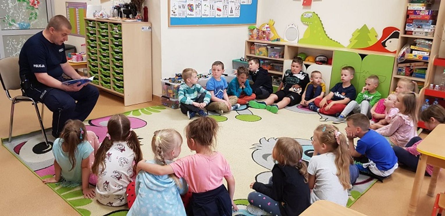 Pola to główna bohaterka książeczki "Na ratunek Poli!", którą z różnego rodzaju tarapatów ratuje za każdym razem policja. Pan Artur przeczytał przedszkolakom fragment wspomnianej książeczki i przekazał na ręce pani Karoliny Darmofał-Niskiej pakiet edukacyjny "Profilaktyka Smyka", który z pewnością wspomoże nas w kształtowaniu u dzieci właściwych postaw związanych z bezpieczeństwem.