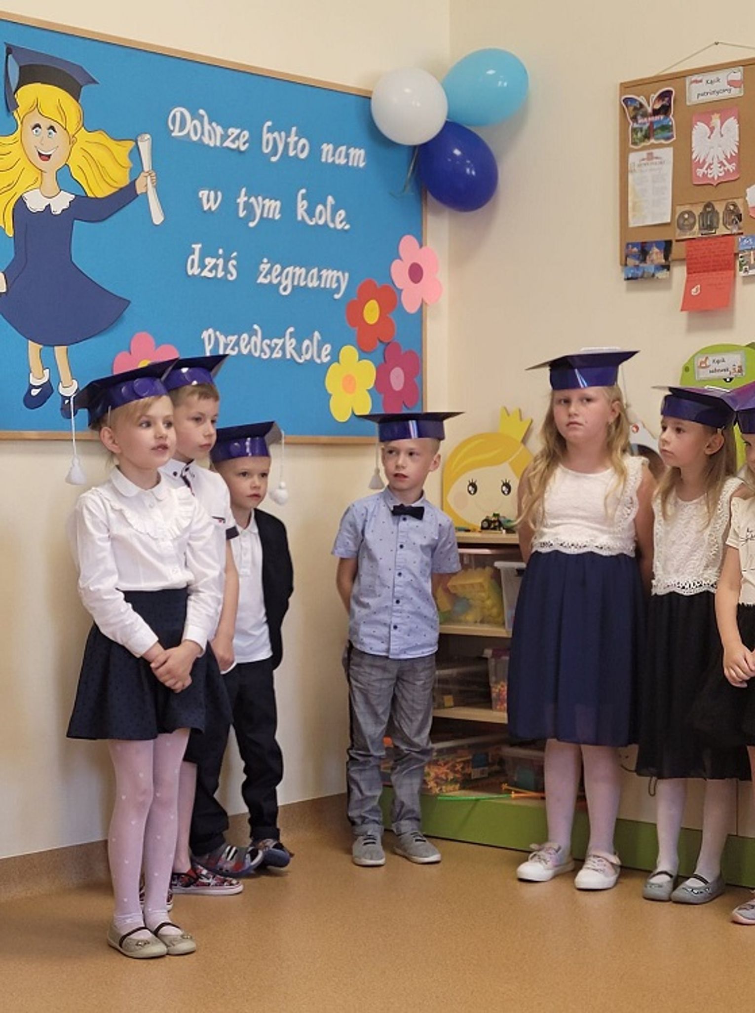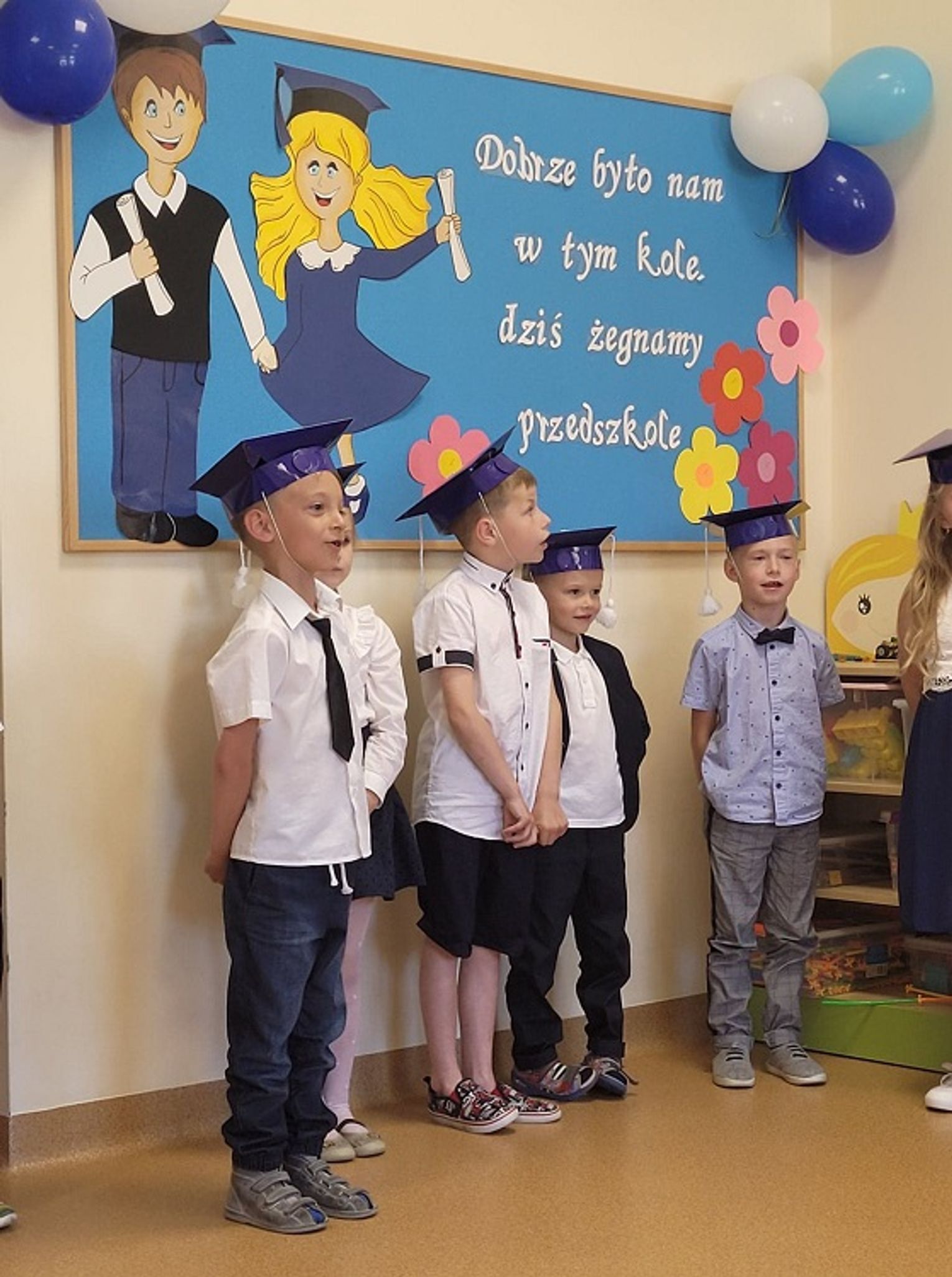 Pożegnania są zawsze trudne, lecz z drugiej strony są znakiem, że zaczyna się coś nowego. Dlatego ze wzruszeniem w sercach, ale i uśmiechem na ustach życzymy Wam, drodzy Absolwenci, powodzenia w szkole podstawowej - mamy nadzieje, że te kilka lat spędzonych w naszym przedszkolu zaprocentuje i kiedyś usłyszymy o wspaniałych młodych ludziach, którzy przygodę z edukacją rozpoczęli właśnie u nas.