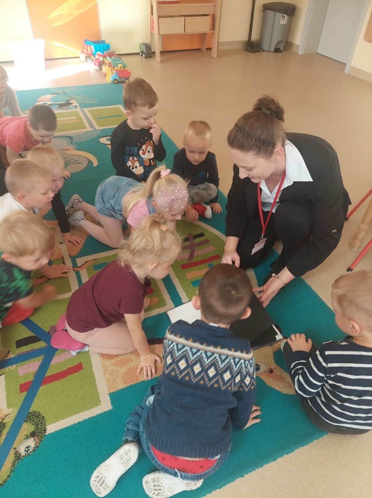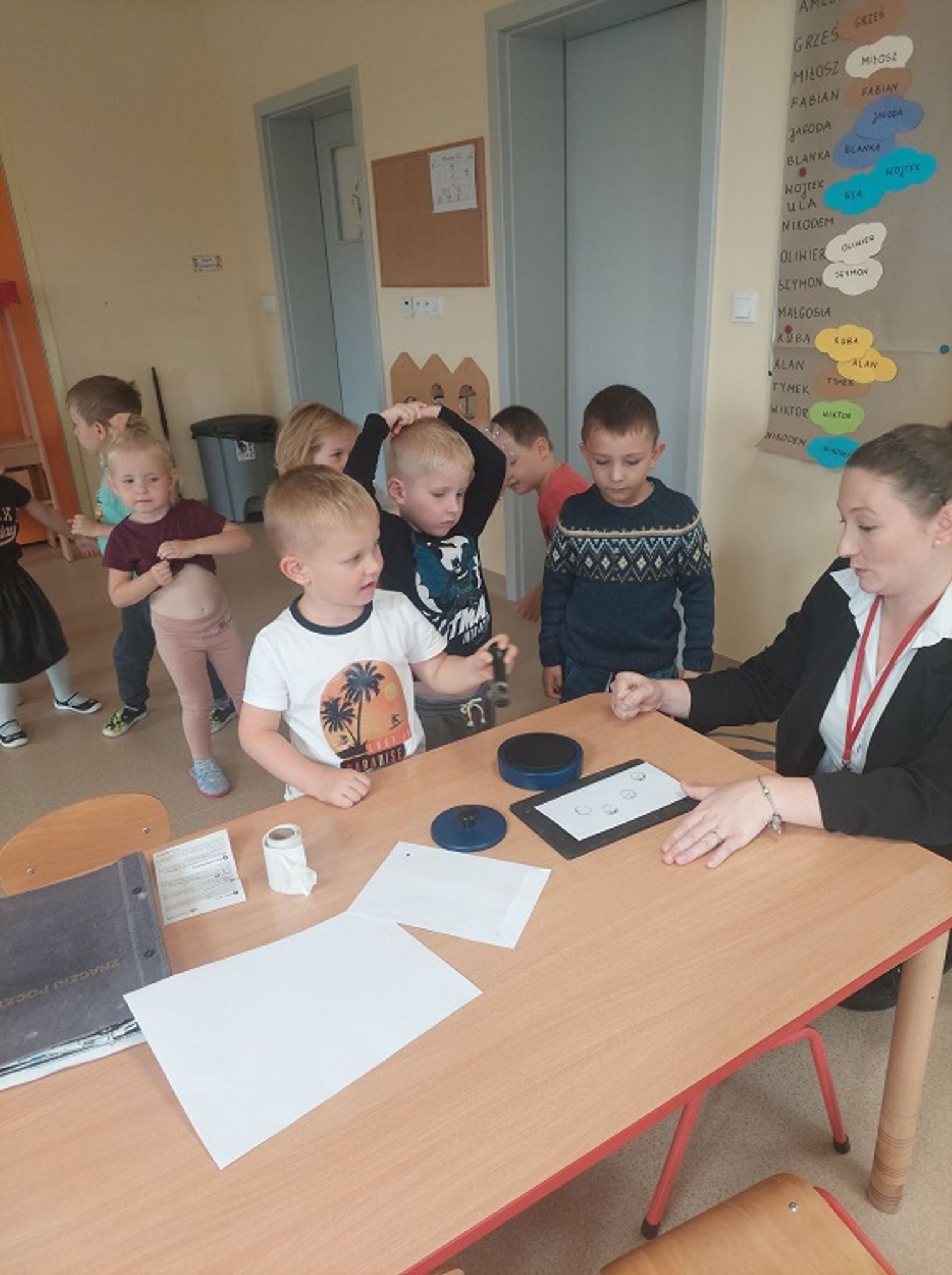 Pani Ania przyniosła ze sobą wielki wór, w którym była spakowane rożne skarby potrzebne do pracy pocztowca, m.in. identyfikator i stempel pocztowy z unikalnym kodem. Pani Ania opowiedziała dzieciom, gdzie się rozładowuje i przechowuje wszystkie przesyłki oraz pokazała im, że mogą one być różnej wielkości. Każdy z przedszkolaków mógł użyć stempla pocztowego do oznaczenia przesyłki. „Pszczółki" obejrzały również cały klaser znaczków o rożnych wartościach. Na zakończenie spotkania Pani Ania podarowała na pamiątkę dla każdego dziecka znaczek pocztowy.